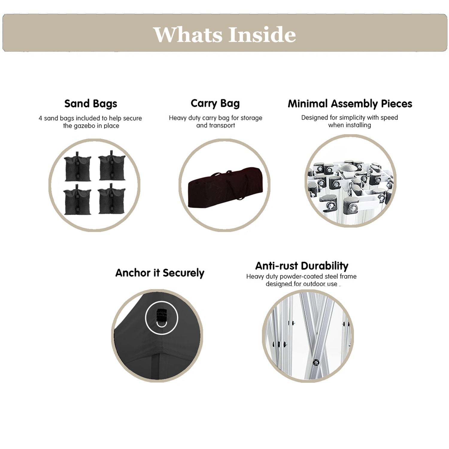 • High Quality Materials: Made of Oxford fabric with PU coating, this canopy is waterproof and blocks 99% of the sun's rays. Includes 4 sandbags, 6 sets of ground nails, and wind ropes for enhanced stability.
