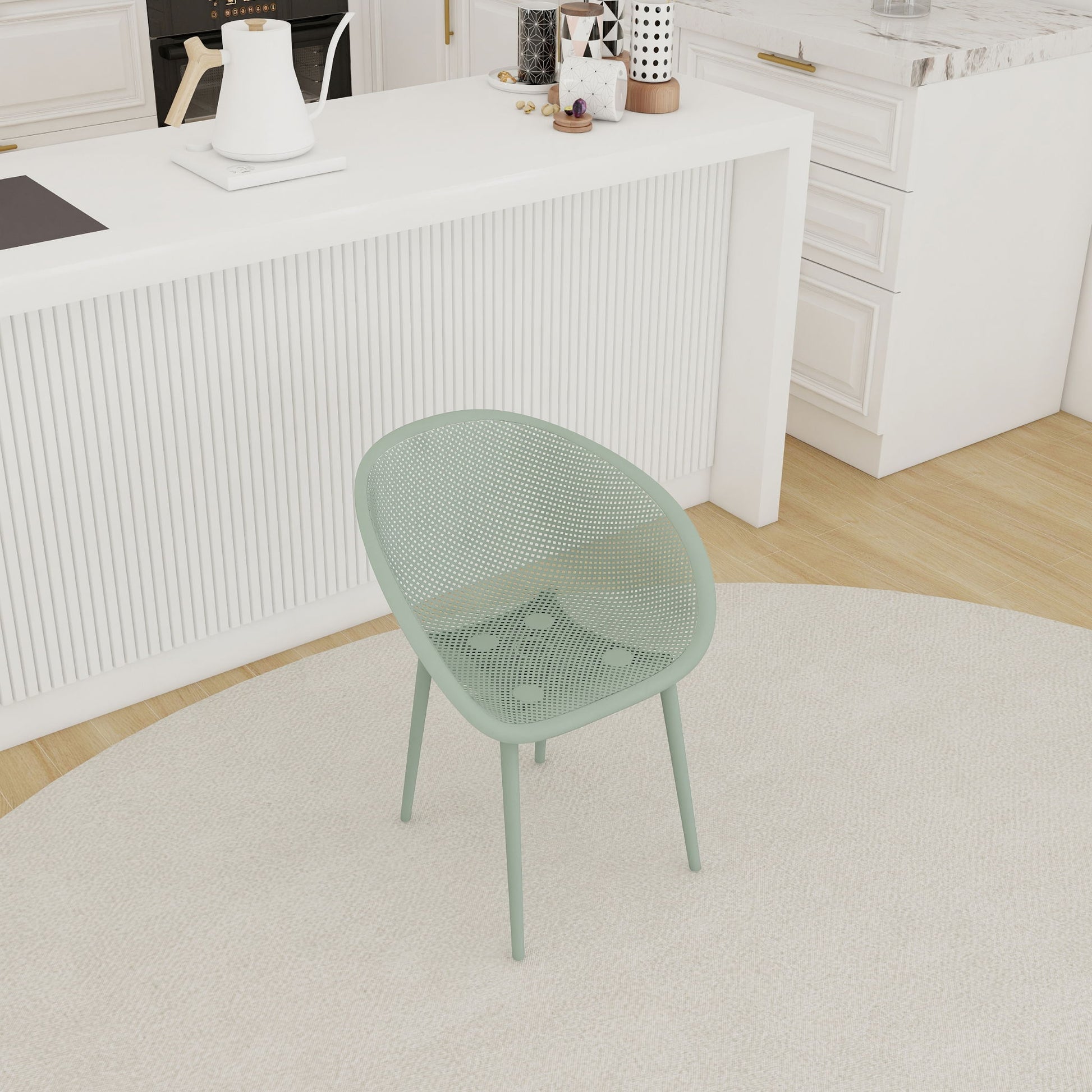 2 Piece Durable Single Chair With Mesh Hollow Out Design - Light Green