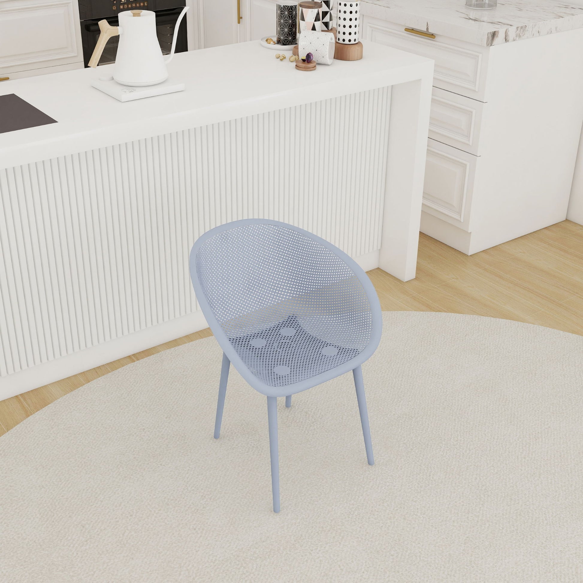 2 Piece Durable Single Chair With Mesh Hollow Out Design - Light Gray
