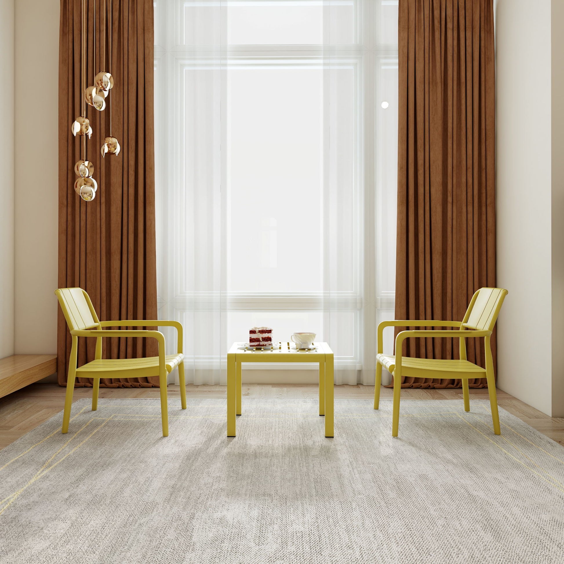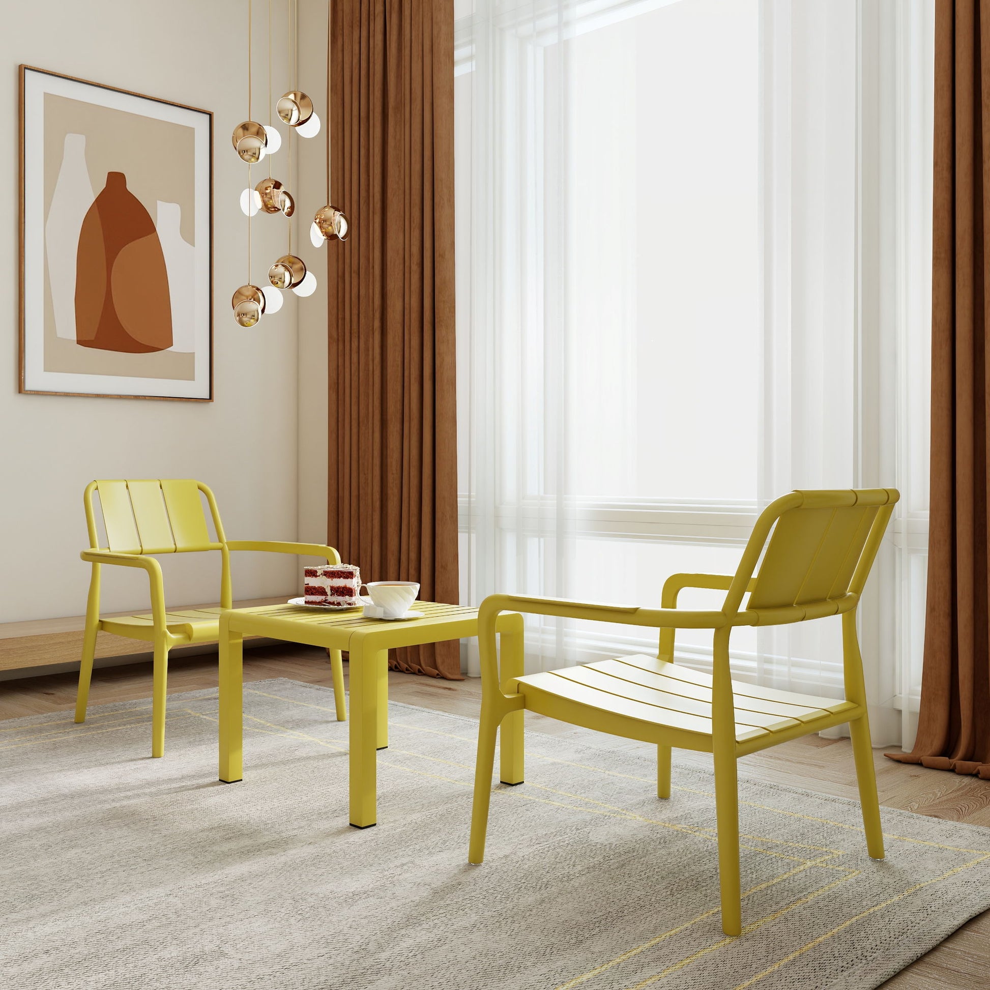 3 Piece Indoor / Outdoor Leisure Table And Chair Set (2 Chairs And 1 Coffee Table), UV Resistant, Waterproof And Durable - Brick Yellow