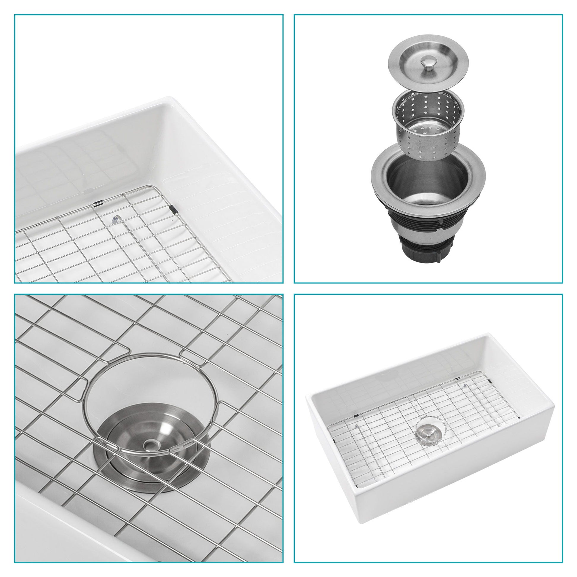 33" Undermount Sink With Apron Front, Single Bowl, Grid - White