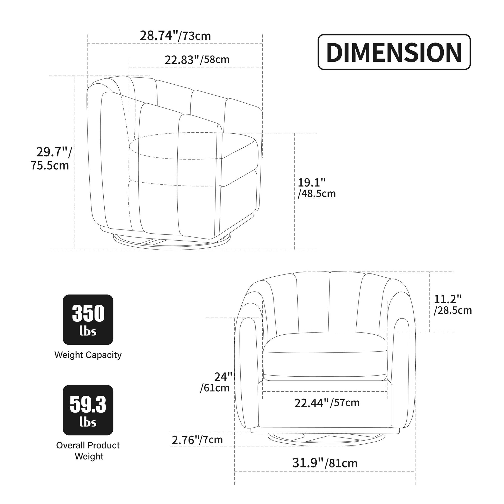 • 360° Swivel: Offers full rotation for flexible seating and easy access to different views or conversation angles.