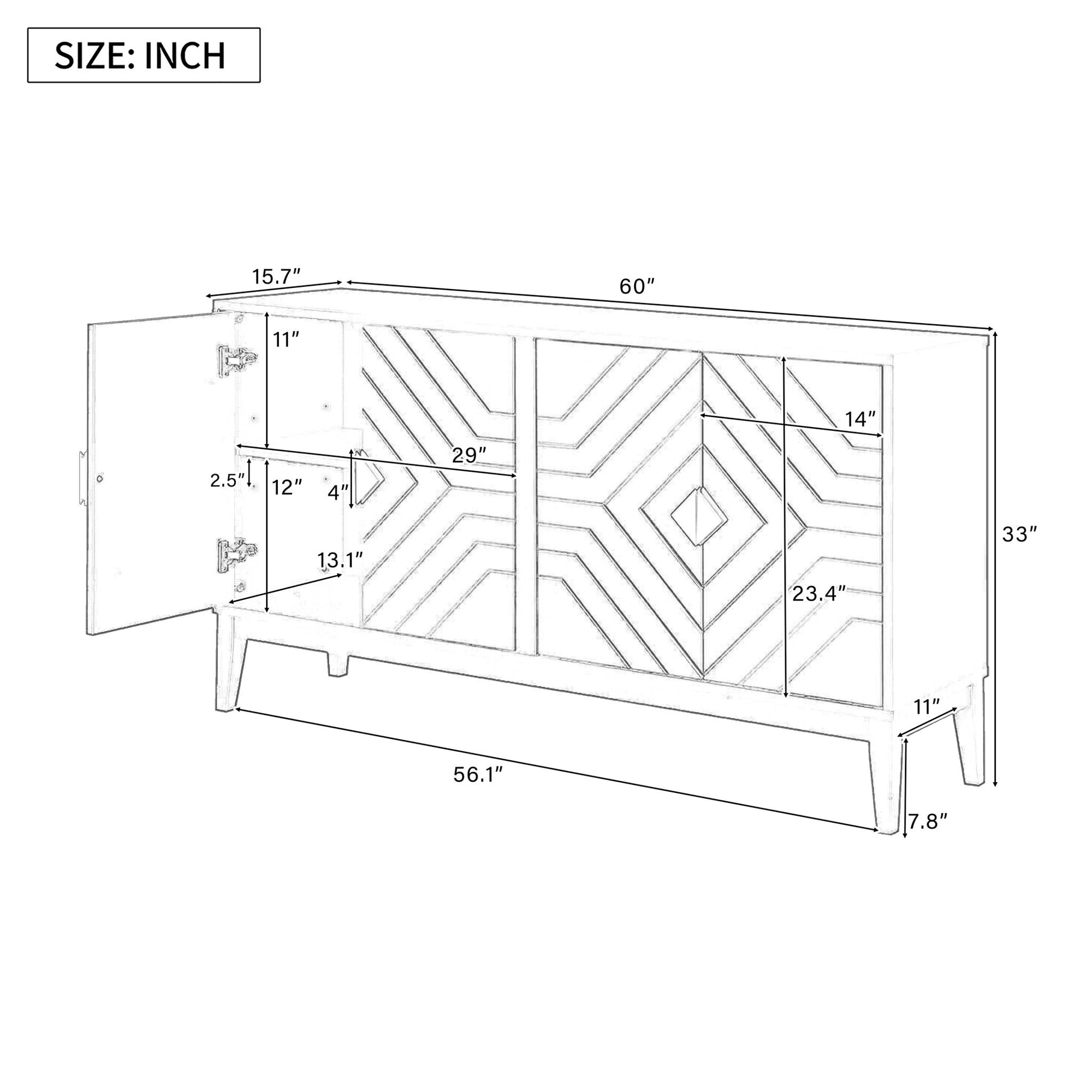 • Durable Construction: The sideboard is crafted from solid rubber wood and high-quality MDF, ensuring stability and longevity. It features smooth diamond handles and adjustable foot pads for enhanced stability.