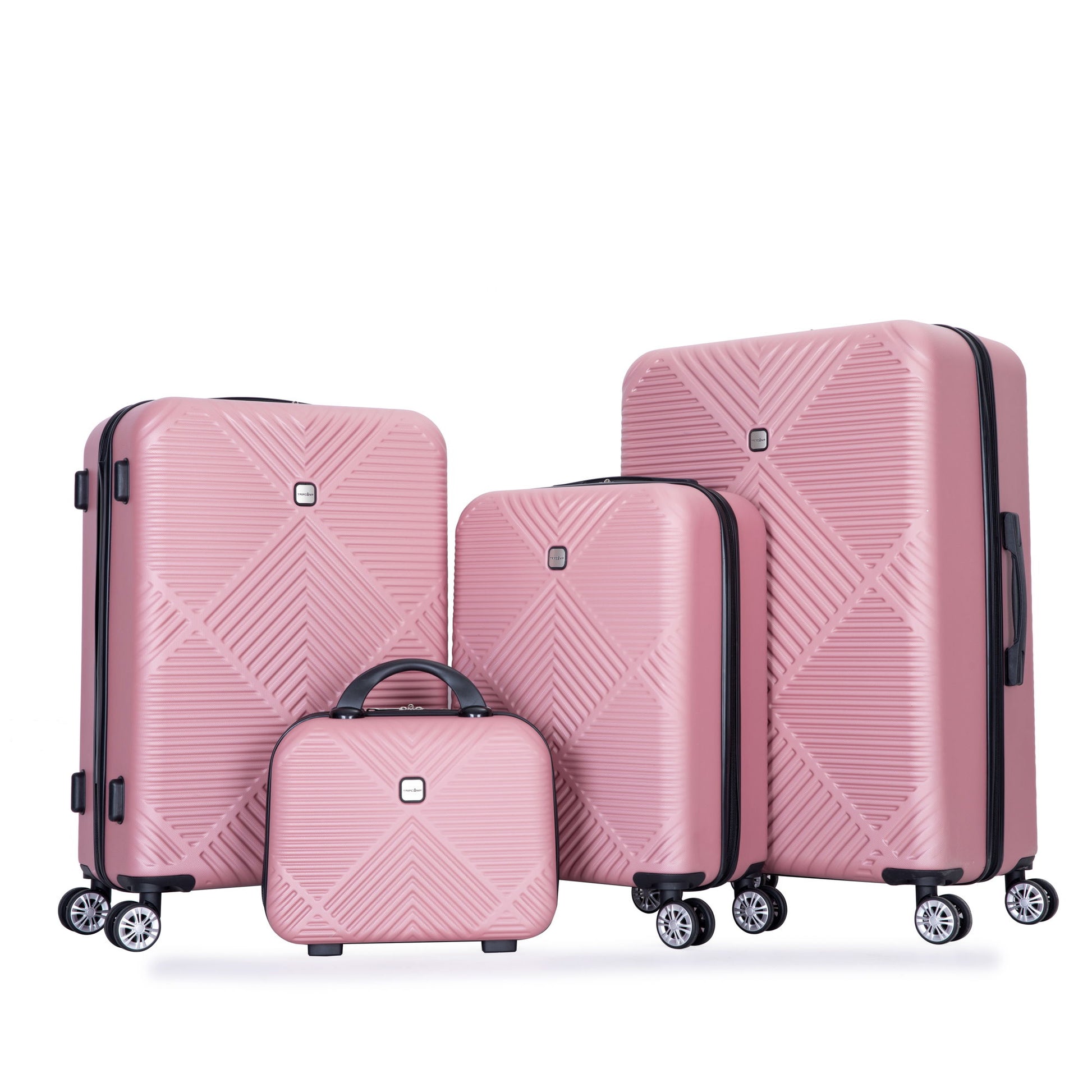 4 Piece Lightweight Suitcase, 14" Makeup Box, Aircraft Wheels (14/20/24/28) - Pink