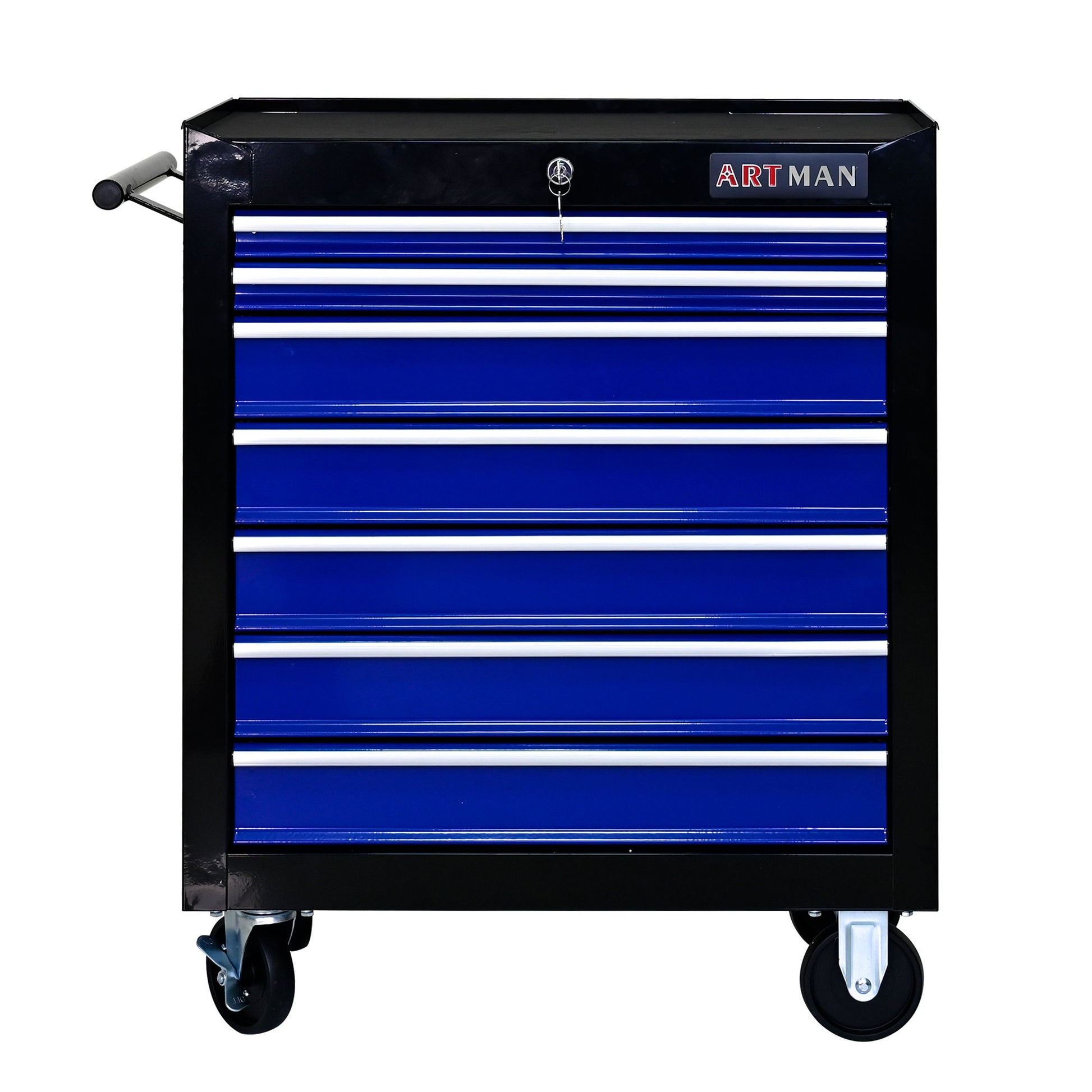 7 Drawers Multifunctional Tool Cart With Wheels - Black / Blue