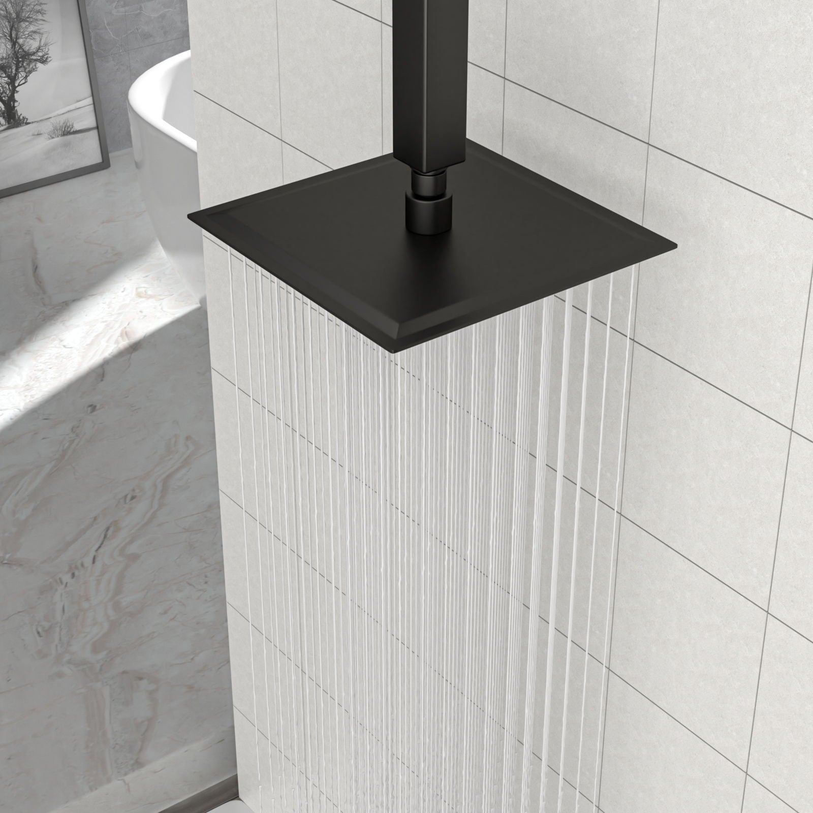 • Full Coverage: 8-inch square design provides waterfall-like full body coverage for a refreshing shower.