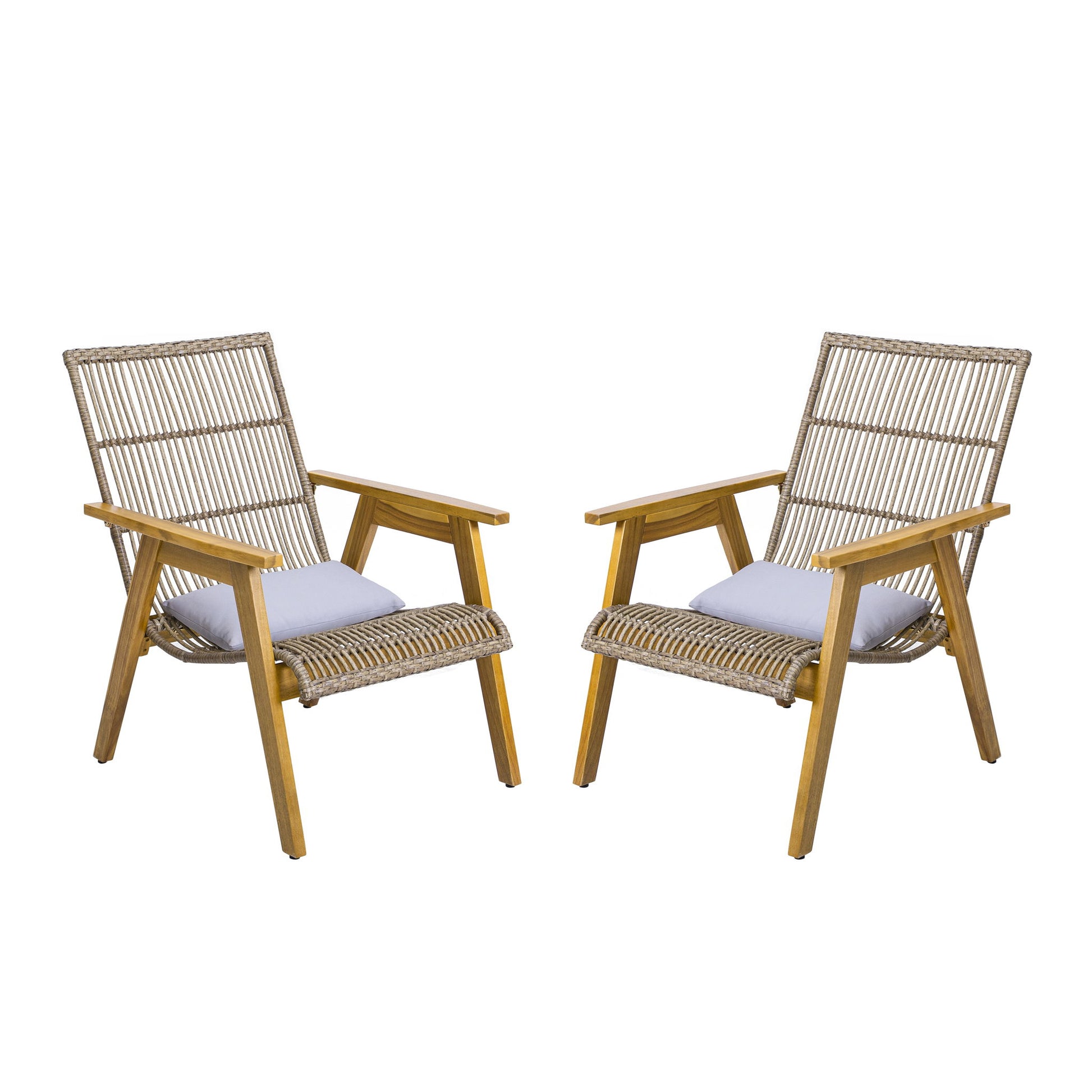 • Material Composition: Crafted with a blend of Acacia wood and wicker, these chairs offer natural warmth and modern durability, perfect for stylish outdoor lounging.
