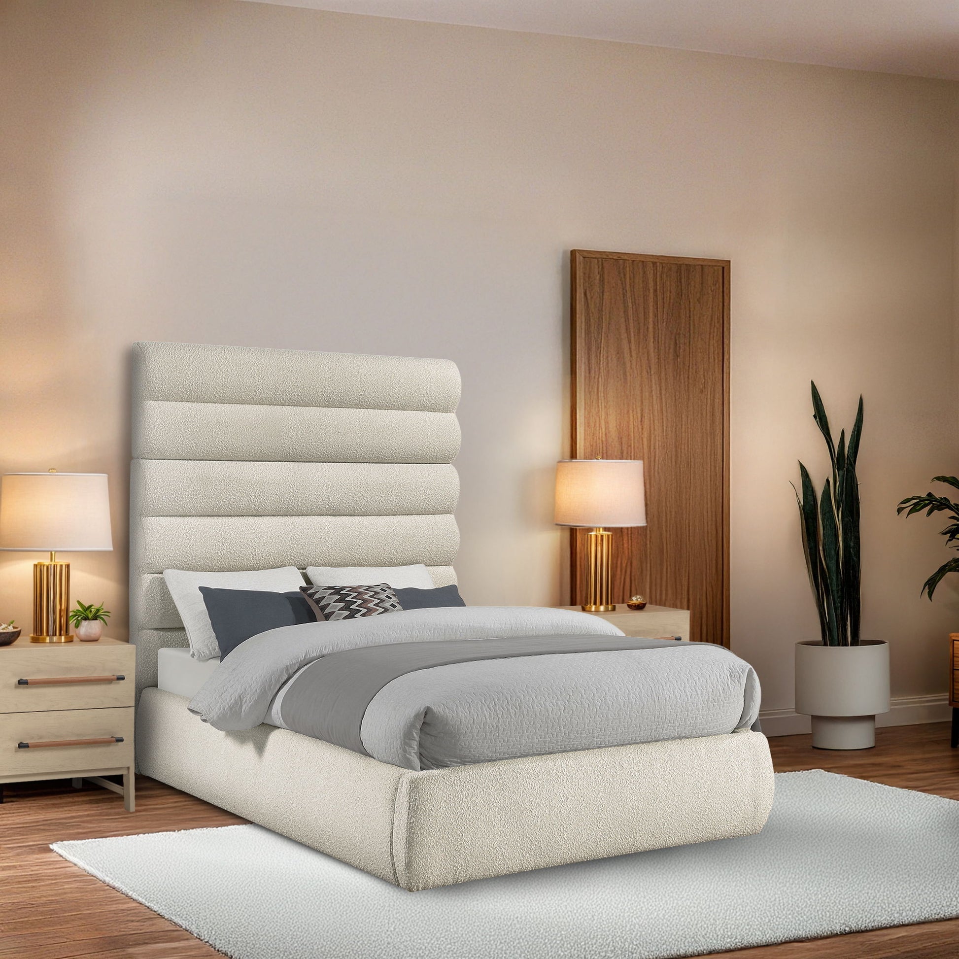 Adam - Boucle Fabric Queen Bed With 70.5" Headboard - White