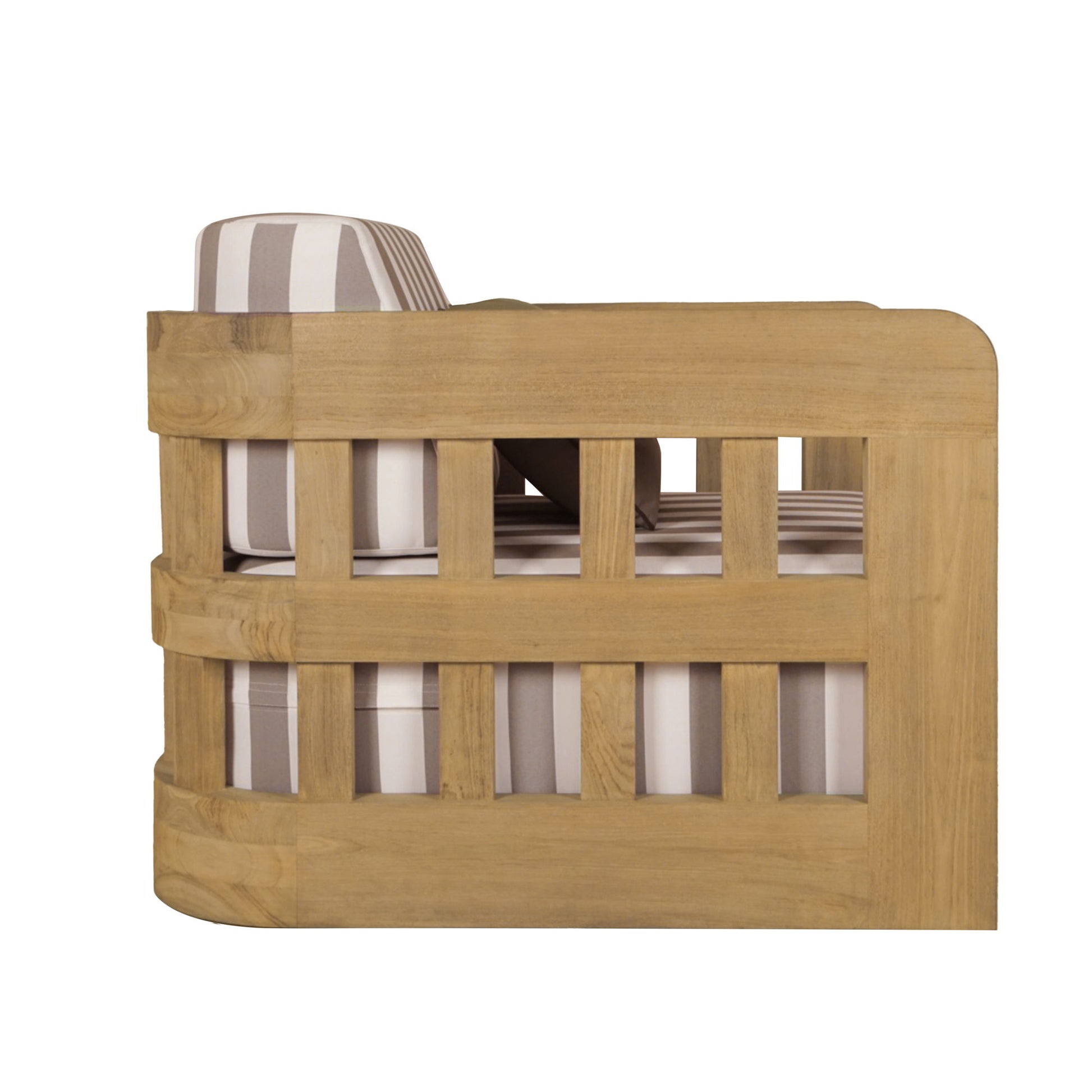 • Solid teak with quick dry foam upholstered in 100% Olefin fabric