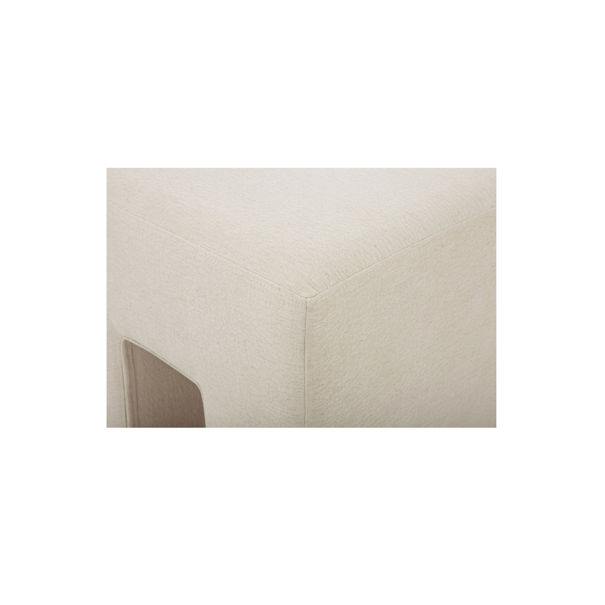 Square never felt so relaxed. The Aidy Stool takes its chunky silhouette and softens it with a linen-blend fabric in oat that feels lived-in and easy. The textured weave and slightly wrinkled finish add subtle dimension, while the firm foam seat keeps it grounded and practical. Equal parts playful and polished, this stool is proof that minimal lines can still have plenty of personality.