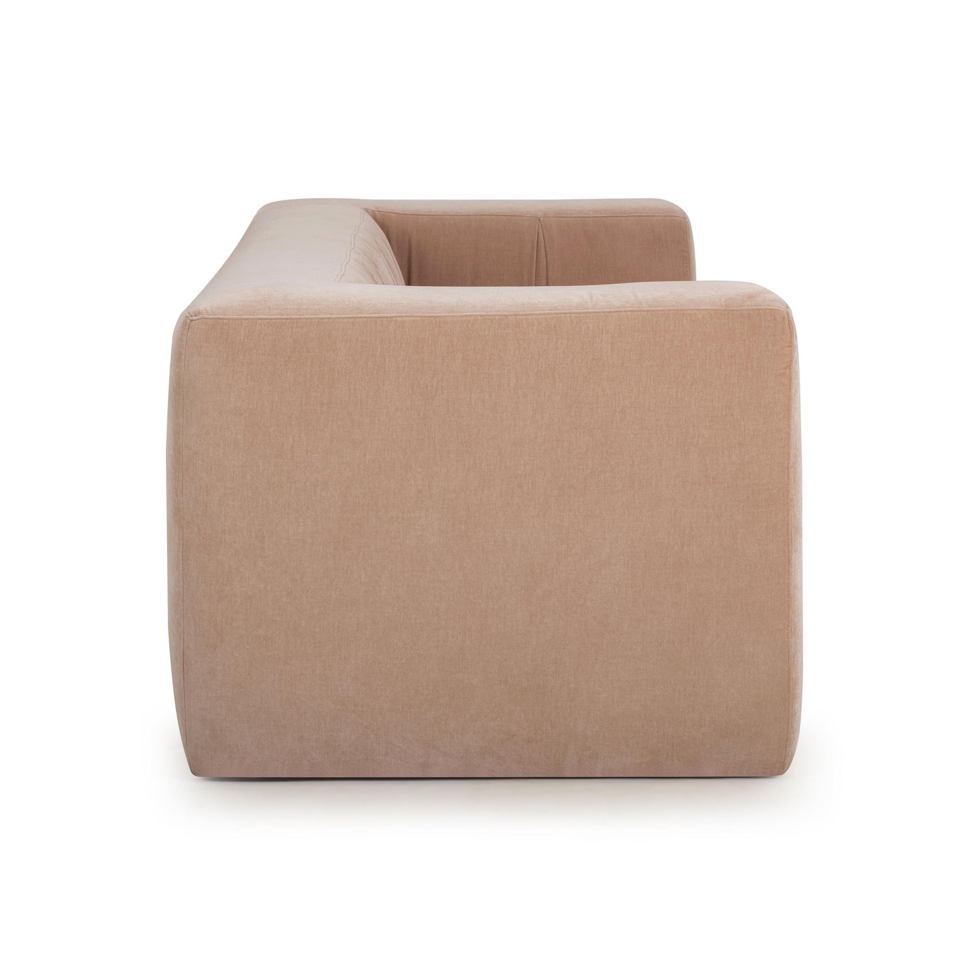 Soft and structured, the Alder Upcycled Chenille Sofa brings sustainability into a sculptural silhouette. Crafted from ruched upcycled velvet spun from reclaimed ocean plastic, its thick padded arms and channel-tufted seat deliver both comfort and a high-fashion finish. Offered in taupe or peach, it's a consciously chic choice for modern living.