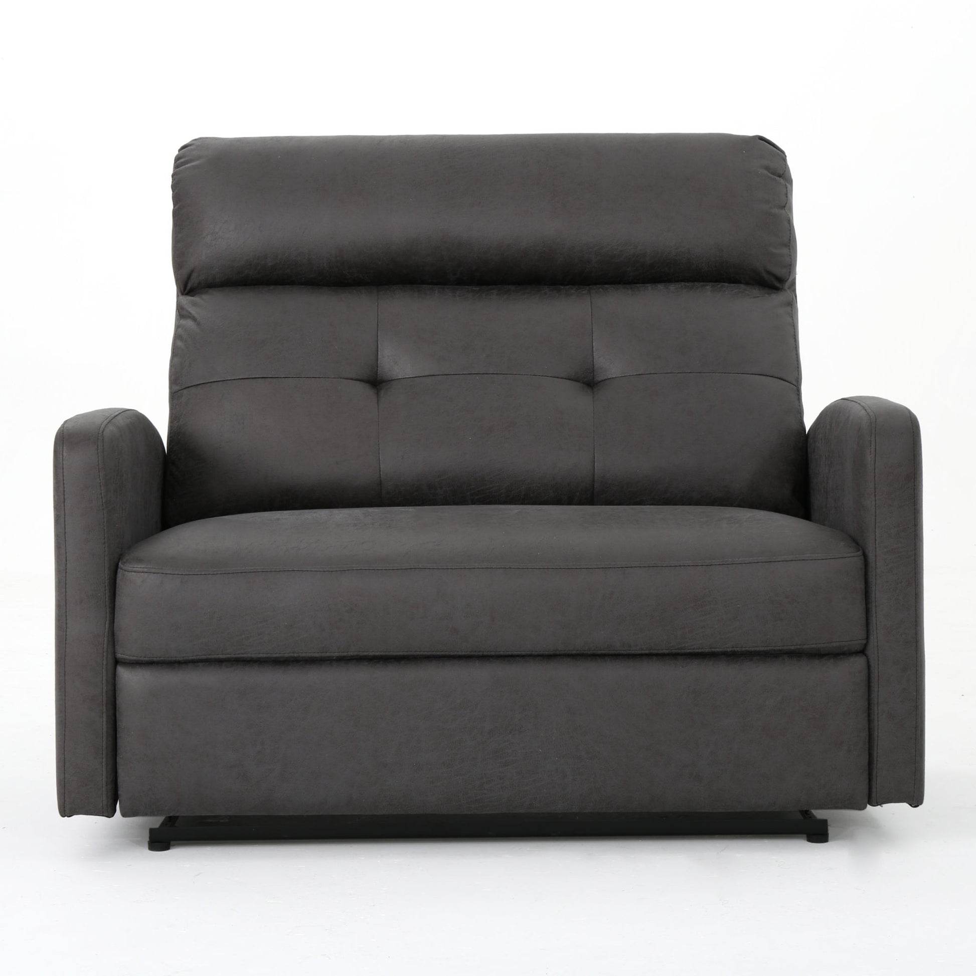 • Contemporary Elegance: This reclining loveseat combines modern aesthetics with refined details like track armrests, waffle stitching, and button tufting for a sleek, sophisticated look that elevates any living space effortlessly.