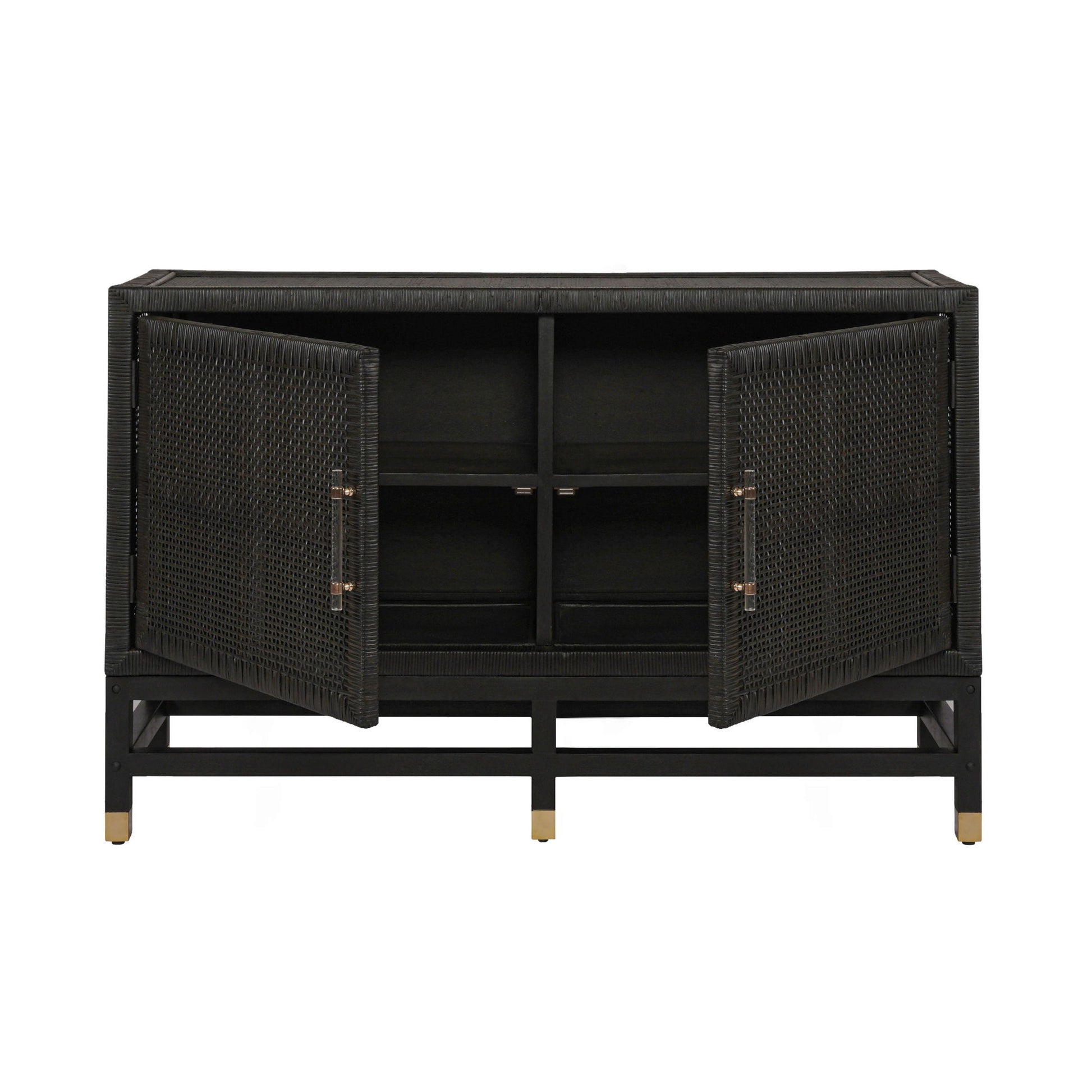 The Amara Buffet is the epitome of relaxed California-cool energy. This piece offers great storage and style with its high-quality wrapped rattan design, brass-capped legs and lucite hardware. Its natural, earthy look complements a wide variety of decor styles, the rattan also adds a touch of warmth and texture to any space.