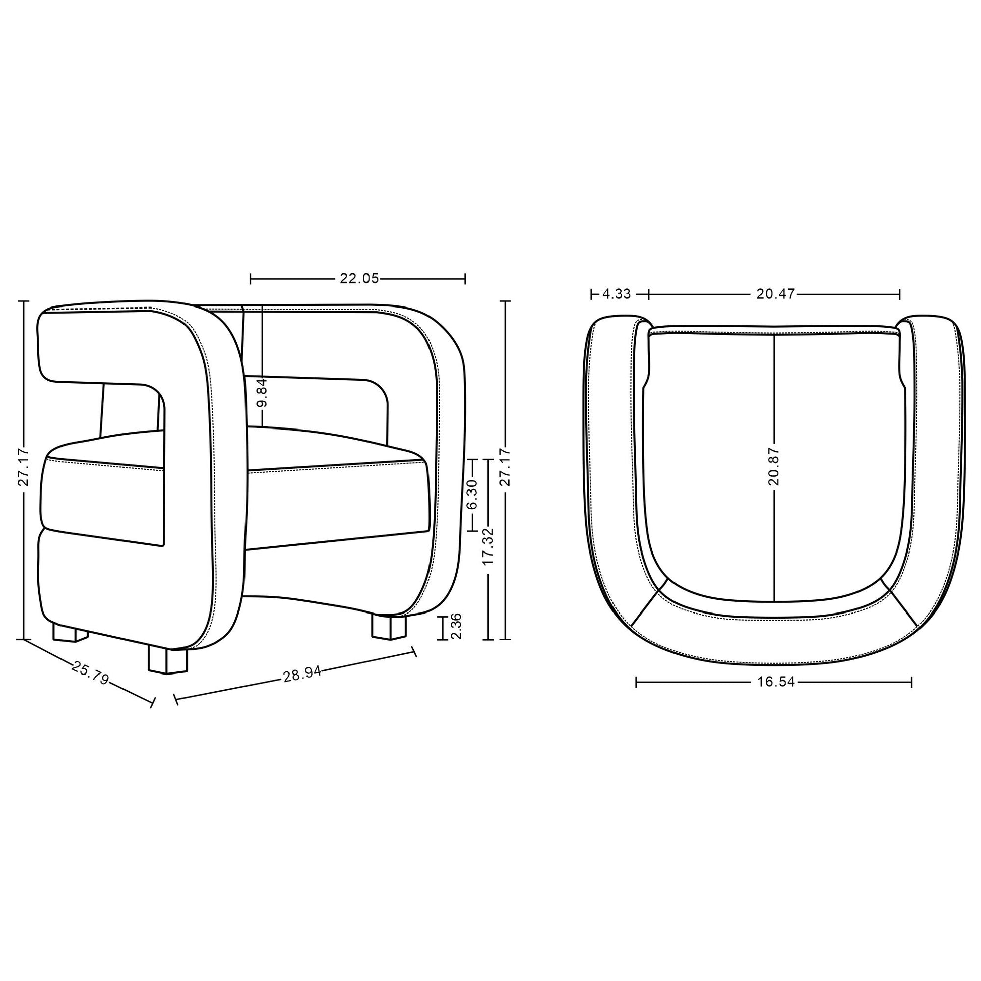 • Spacious Seating: Inner seat depth of 20.87 in. and width of 20.47 in. for ample room