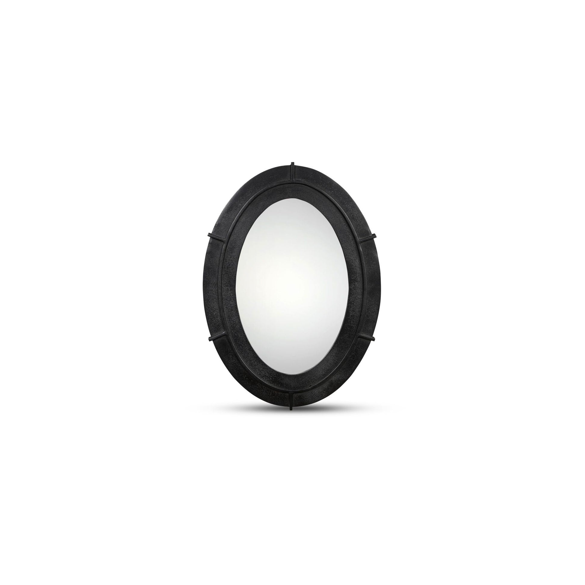 • Bold Black Finish: The bold oval shape is softened by the aged black finished iron frame and its intricate details, reminiscent of the Art Deco movement.