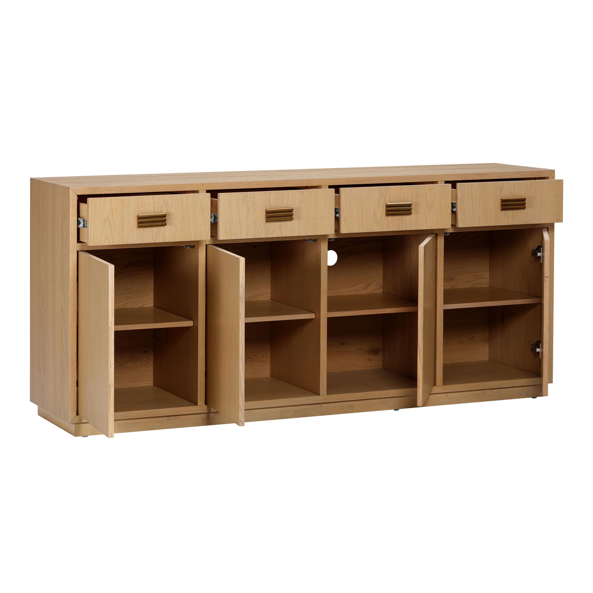 Discover the exquisite craftsmanship of the Aria Buffet, showcasing European veneers that add a contemporary feel to any dining space. Its soft close doors and zinc handles ensure seamless functionality and a luxurious feel. With push-to-open doors, this buffet exudes a minimalist aesthetic, combining style and convenience in one remarkable piece of furniture.
