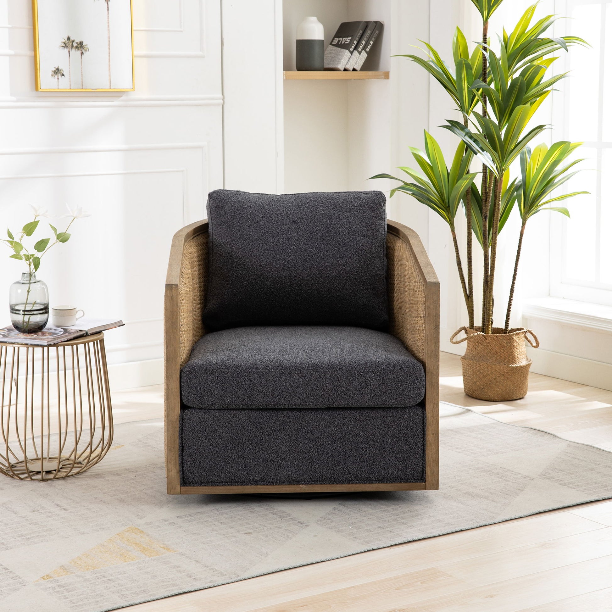 Comfy Swivel Barrel Chair, Round Accent Sofa For Living Room, 360 Degree Leisure Arm Chair - Carbon Black