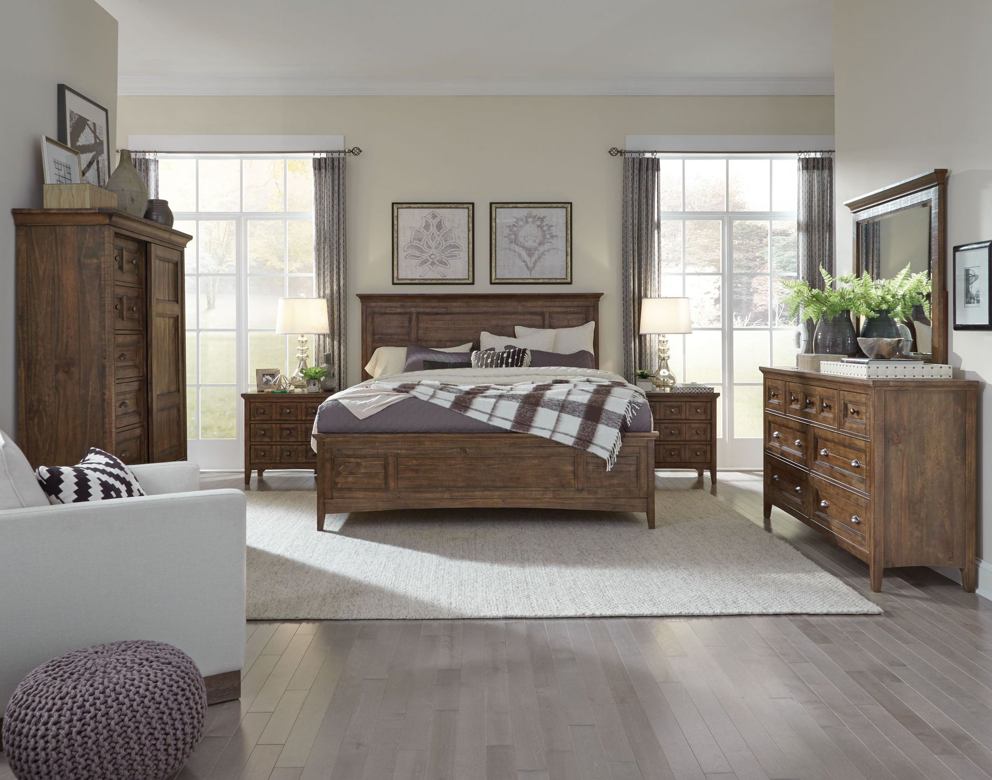 Retreat to Bay Creek and enjoy a yummy Toasted Nutmeg finish on Pine veneers and solids accented by aged bronze hardware. Whether in a second home, a casual city abode or in the suburbs, this collection offers beaded, framed panel drawers over straight shaker inspired legs and plenty of drawers to stow your togs. The rectangular panel bed offers a tailored respite as well a storage rails alternative.