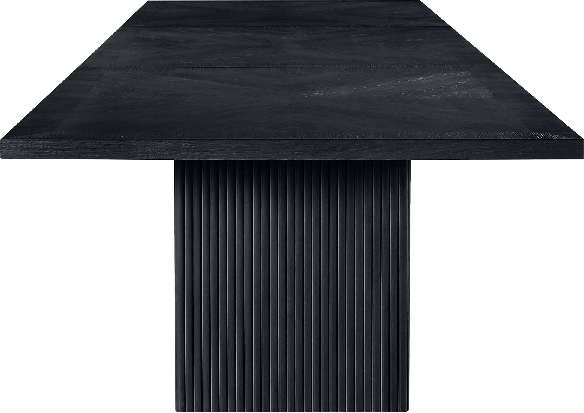 Even the smallest, most intimate dinner feels like an event when you're seated at this Belinda black modular dining table. Crafted with a solid wood base and a black finish oak wood veneer MDF top, its square top with fluted base exudes contemporary charm. The table top's thickness and natural wood grain variations add unique character, ensuring each piece is one-of-a-kind. Modular to create infinite configurations, it blends functionality with style for memorable dining experiences in any space.