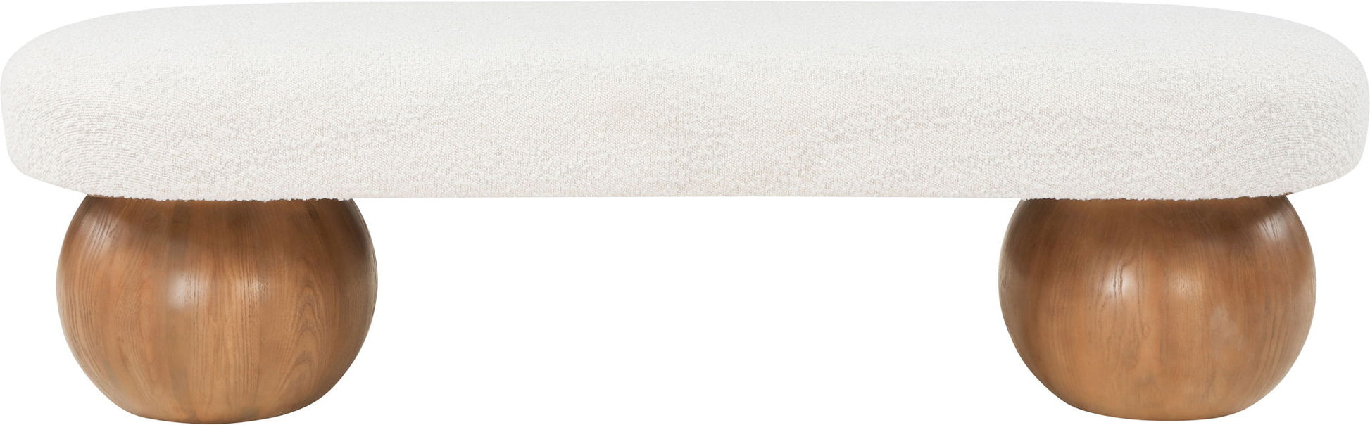 Elevate your home decor with this stunning Bowie Boucle Fabric Bench. The rich boucle fabric gives it a luxurious and sophisticated look that is sure to catch the eye of guests. The walnut finish on the solid ash wood ball-shaped legs adds a touch of charm and elegance to the piece. Whether you're using it as a stylish seating option in your living room or as a chic accent piece in your bedroom, this bench is sure to impress.