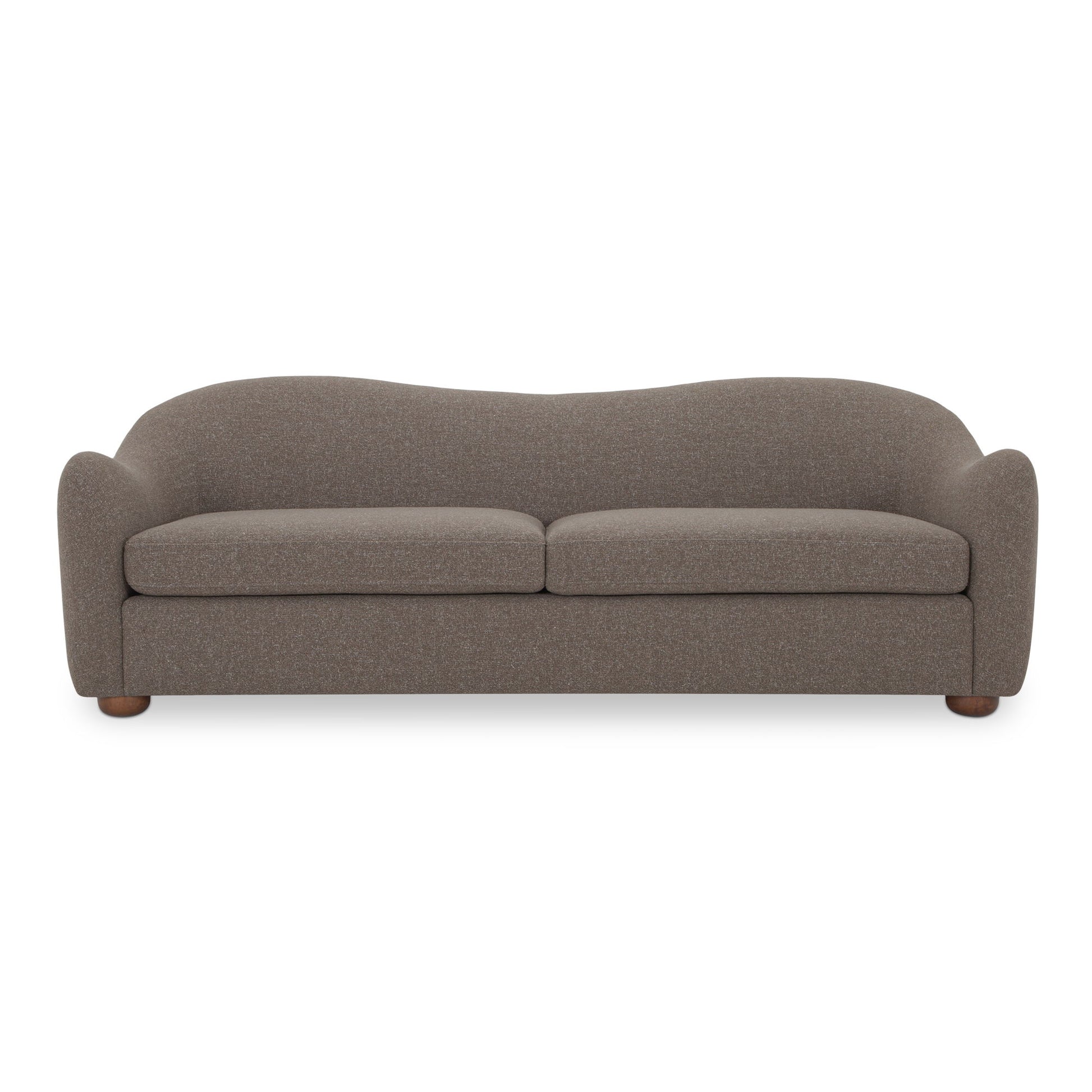 The Bria sofa's gently sloping arms and rubberwood feet, finished in rich, warm brown inspire a vintage charm, reimagined for contemporary living. Crafted with a removable high-density foam seat cushion and upholstered textured, flecked fabric, it offers supreme comfort.