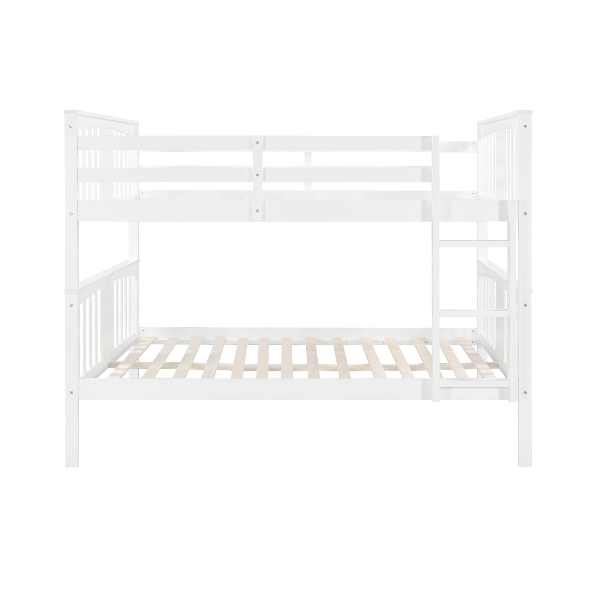 Full Over Full Bunk Bed With Ladder For Bedroom, Guest Room Furniture - White