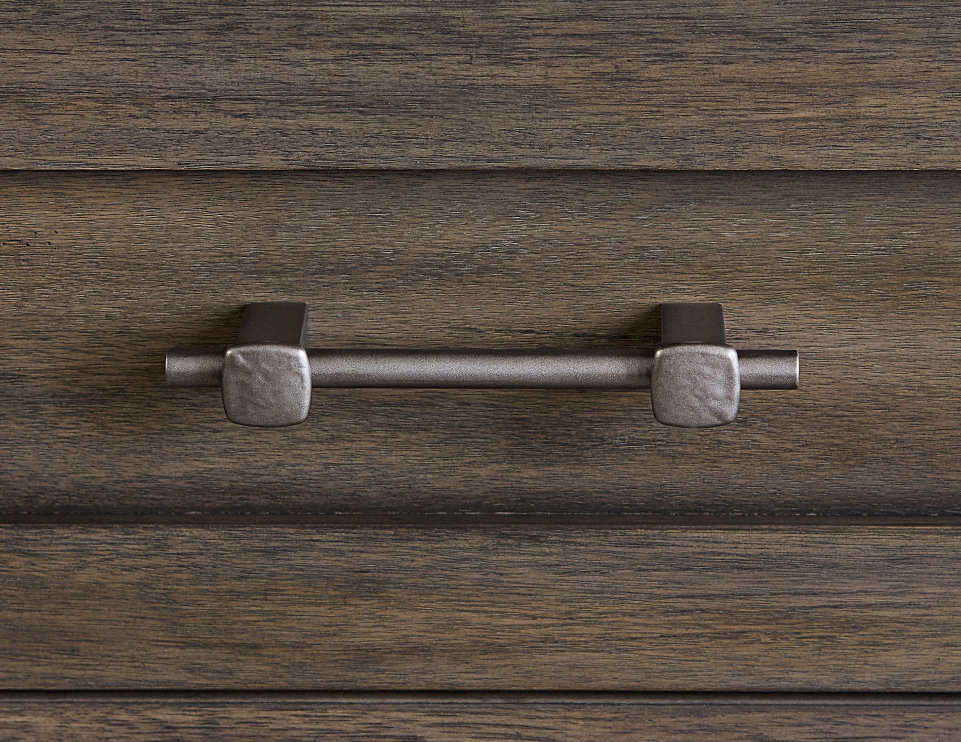 With clean lines and a rustic casual look,, Bunkhouse is sure to pop in any room. Crafted with select hardwoods,, the Vertical mirror is a versatile addition to this collection. The beveled edge mirror is accentuated by the aged barn wood finish frame,, highlighted with a decorative strip of corrugated metal at the top. The Vertical Mirror embodies the natural feel of this strong,, unique collection. .
