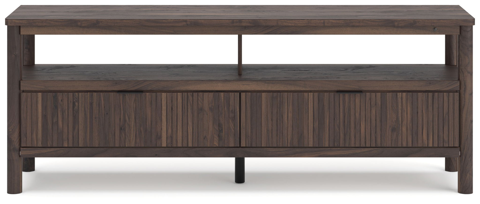 Crafted with both form and function in mind, this TV stand brings a dash of retro-cool character to your modern boho aesthetic. A reeded design on its drawers adds an on-trend touch to storing entertainment essentials. Warmly welcoming with a rich brown finish, the TV stand pairs well with muted hues, earth tones and other neutrals alike. And for added ambiance, lighting under the top brings a cool vibe to your favorite shows or video gaming. What a refined take on easygoing style.