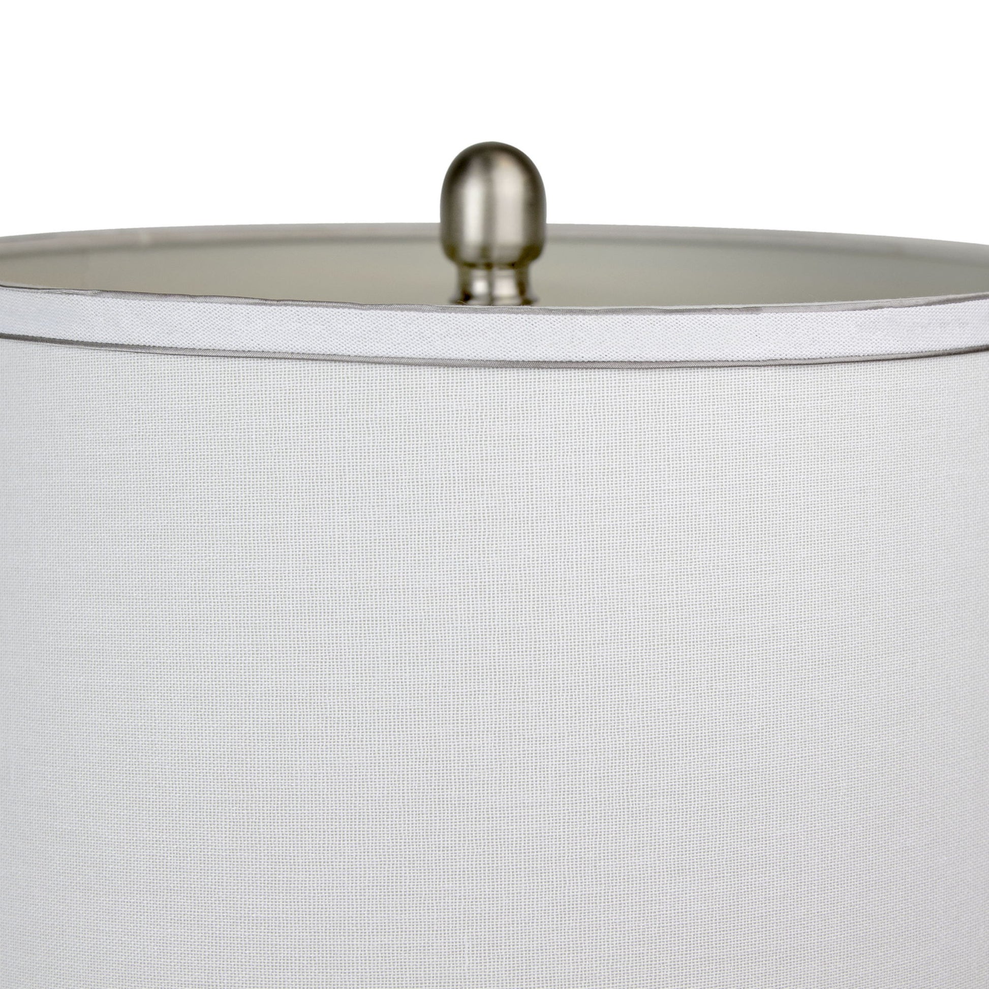 • Linen Drum Shade: The lamp includes a tapered drum shade made from linen, featuring a beautiful silver trim that enhances its overall aesthetic appeal.