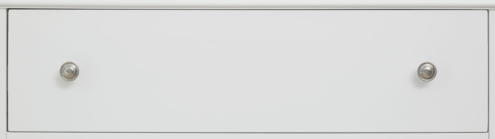 With a finish, the Canterbury bedroom collection is sure to shine in your home. Clean lines give the Drawer Chest a sophisticated depth that will compliment any décor style. Bronze finished knobs add flare to this piece that offers plenty of storage room with five deep drawers. Top with a vase of bright flowers or a stack of books for a lovely contrast. Crafted from poplar solids and rustic birch veneers, this dresser is a timeless accent that will endure in its simplicity. Anti-tip hardware is included. CA Carb P2 Compliant.