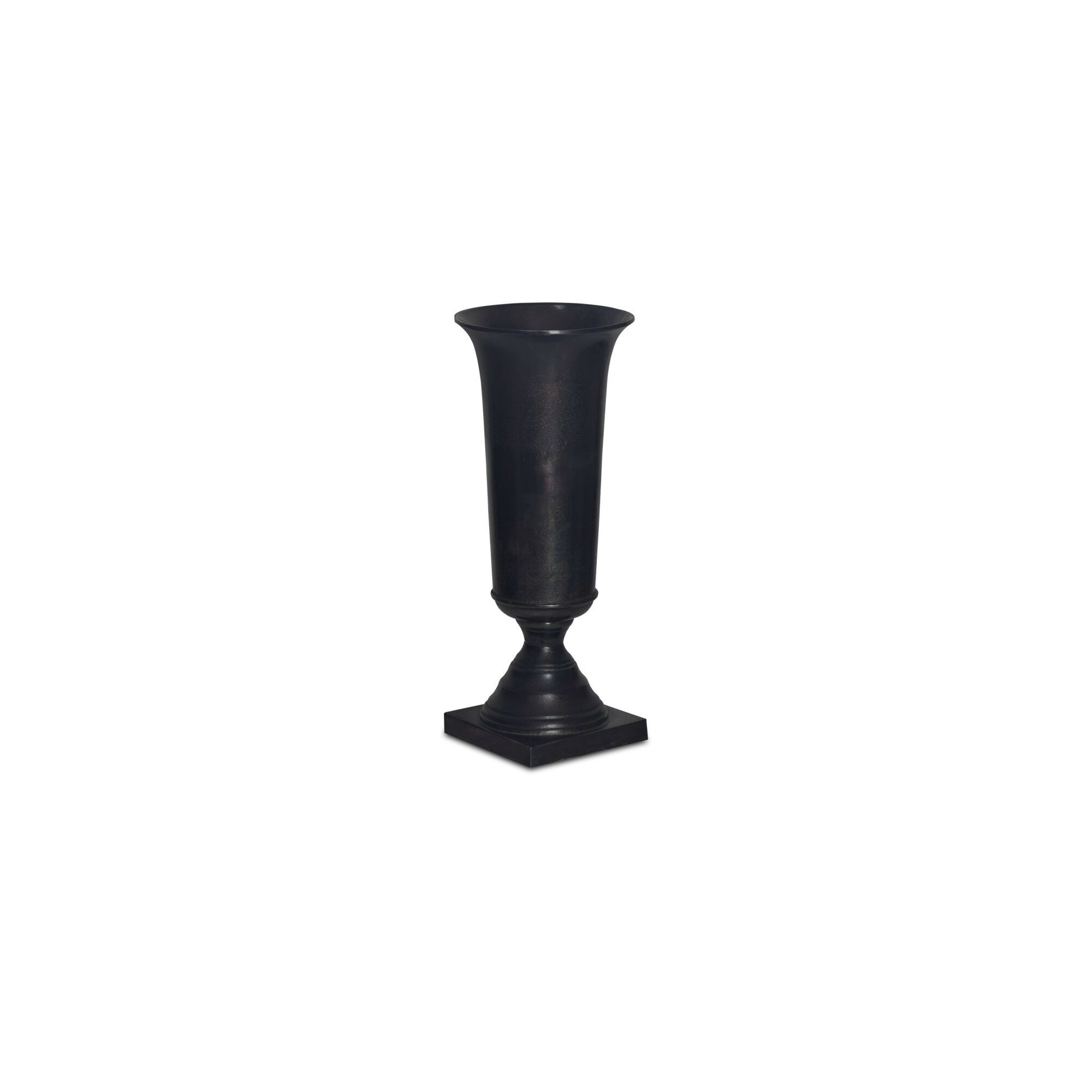 • Cast Aluminum: Tall, classic cast aluminum vase with a traditional fluted shape, circular detailing at the base, and a vintage Art Deco feel.