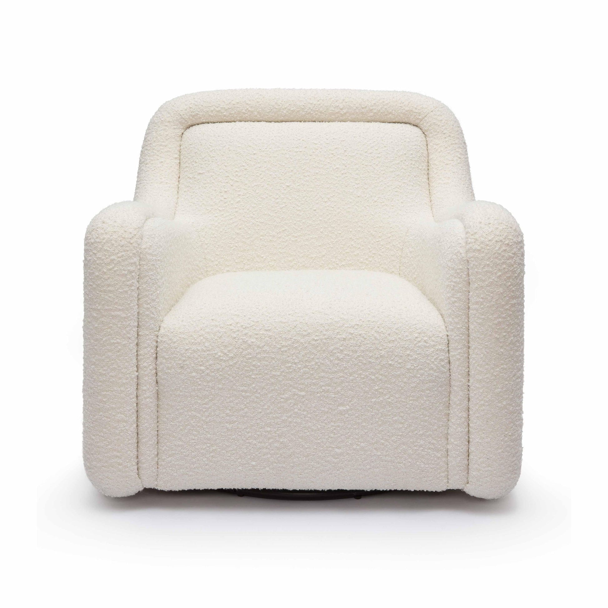 Sink into the embrace of the Charli Swivel Chair, where form meets function in the most inviting way. Available in your choice of two soft boucle fabrics or a textured basketweave chenille, this chair offers a cozy, elevated feel that is as durable as it is beautiful. Its contract-grade fabrics are easy to clean, making it a perfect fit for busy spaces. With bold tubular arms and sensual curves, the Charli Swivel Chair invites you to spin into style and comfort; every moment, effortlessly chic.