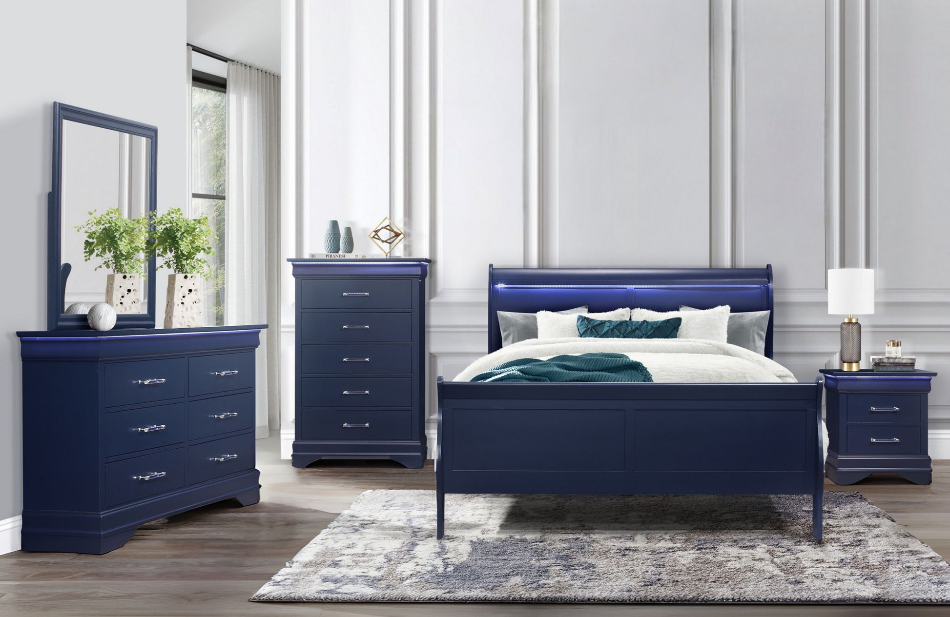 The Charlie Collection is a fresh take on a traditional Louis Philippe. This stylish bedroom features LED accent lighting and acrylic hardware on all case pieces. The Charlie Collection is expertly crafted with premium materials, ensuring durability and longevity. Upgrade your sleeping space with this stylish set and enjoy a luxurious and comfortable sleeping experience.