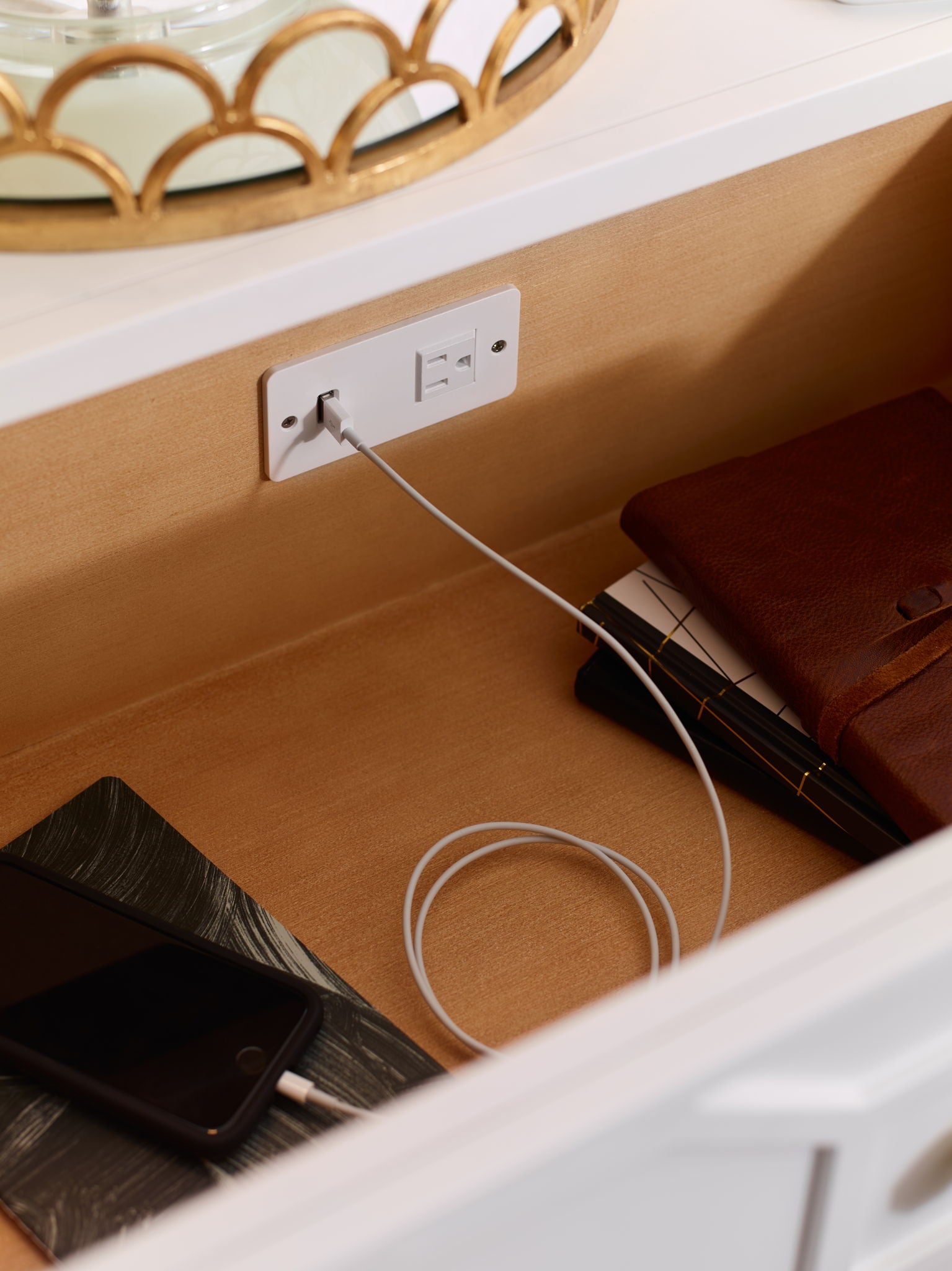 Rachael Ray's Chelsea collection is a glamorous,, sophisticated grouping that brings her fashion-forward taste to your home. These modern,, intriguing pieces are sure to add a high-end look to any bedroom. The clean,, transitional lines of the Bright White finish are offset with Soft Gold Finished Knob hardware and accents,, making each piece as warm and inviting,, as it is stylish. Create your perfect space with Chelsea by Rachael Ray Home.
