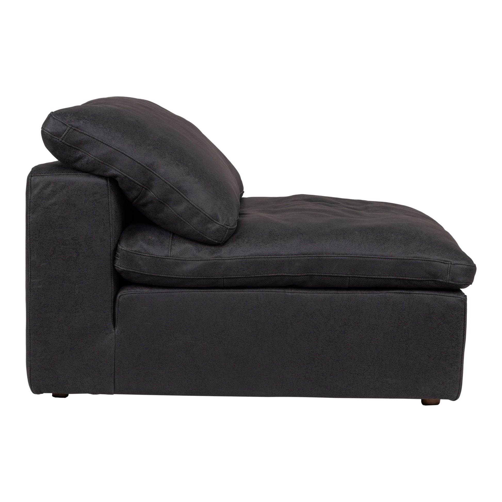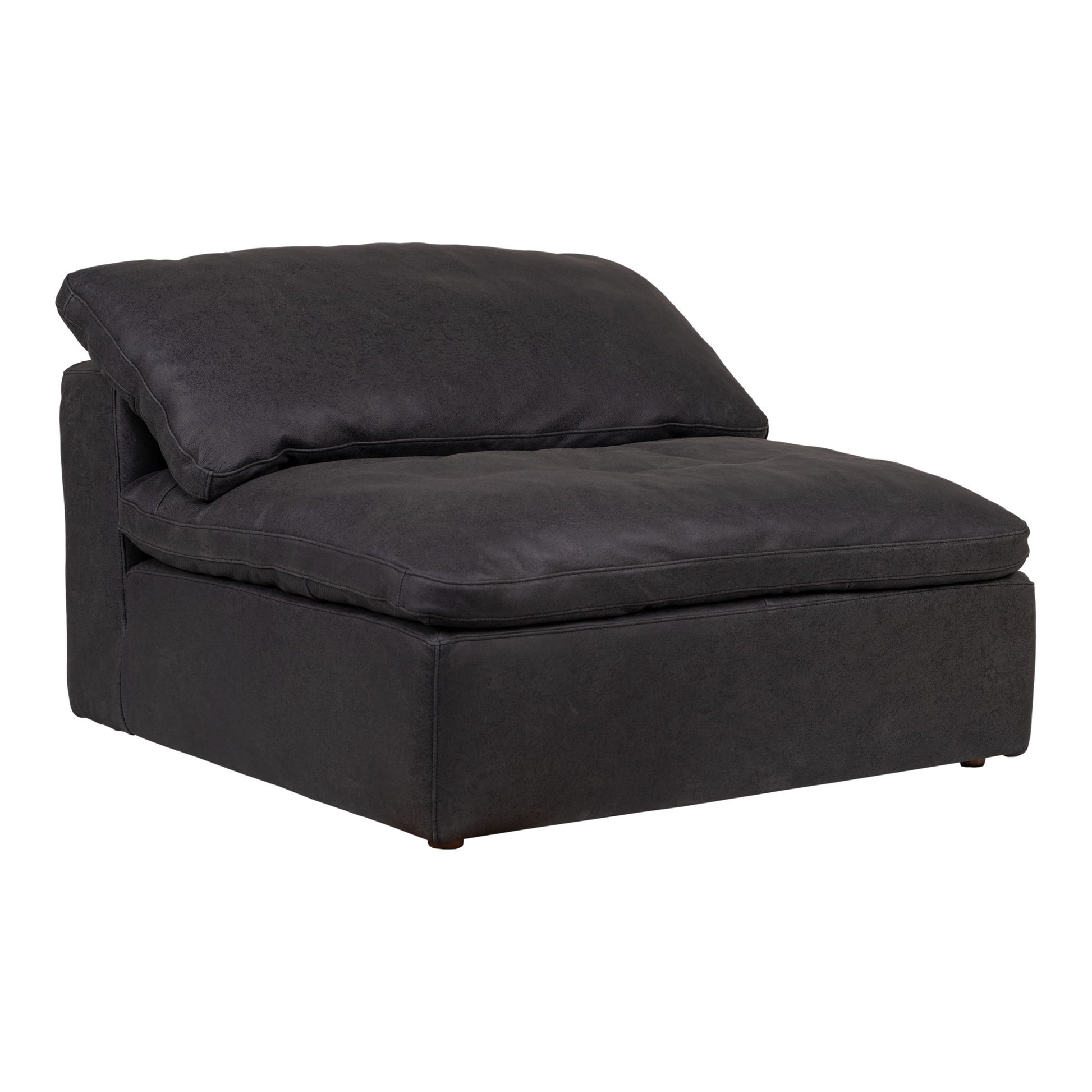Our Clay Armless Chair is made from incredibly smooth nubuck top-grain leather. Its cushions are filled generously with feathers and then channeled and double wrapped in a feather-proof jacket. Get the full experience with the Clay Corner Chair and Clay Ottoman to create a stylish modular design that fits the unique space of your home.