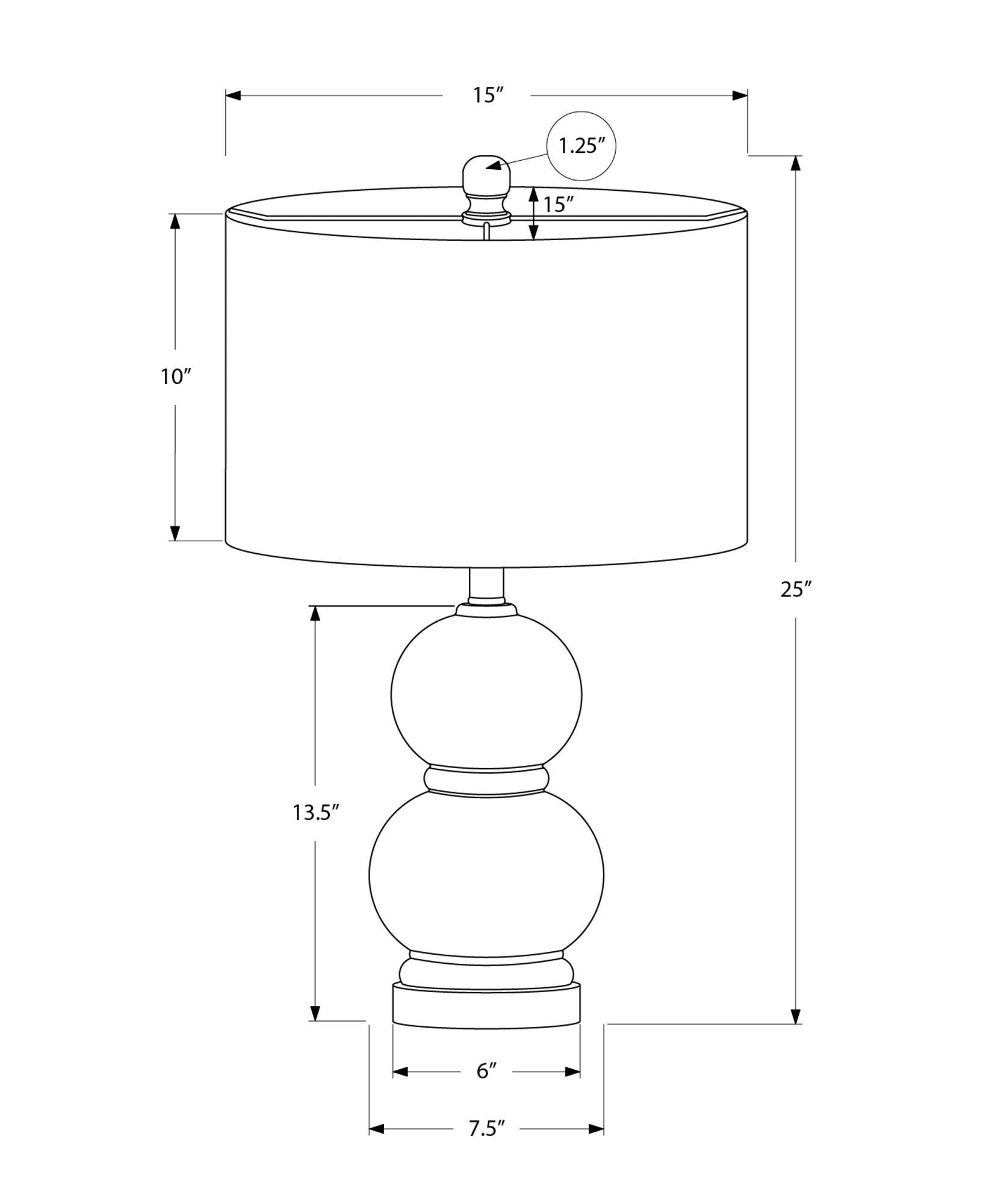 • Stylish Design: Contemporary 25"H cream ceramic table lamp with a double gourd shape on an acrylic crystal-like base, topped with a chic drum ivory shade.