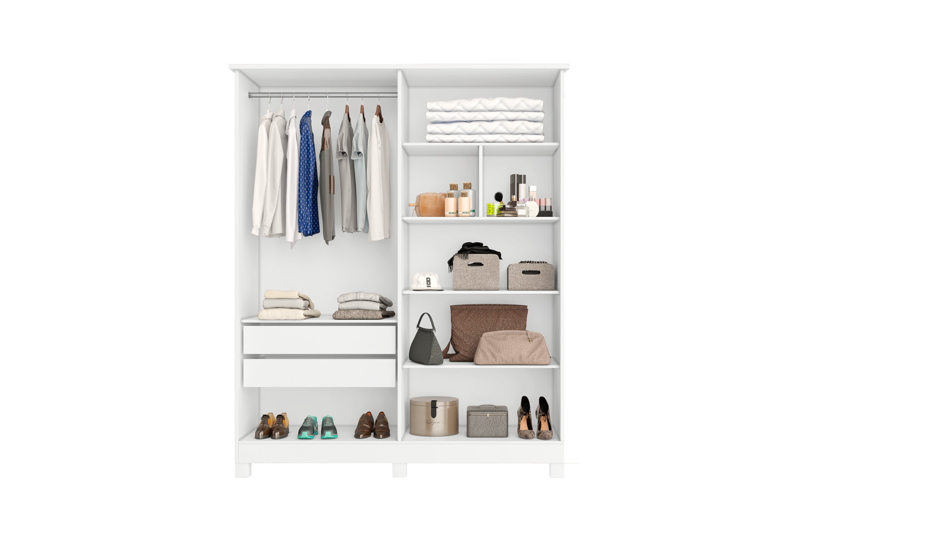 • Space for long garments with aluminum hanging rods