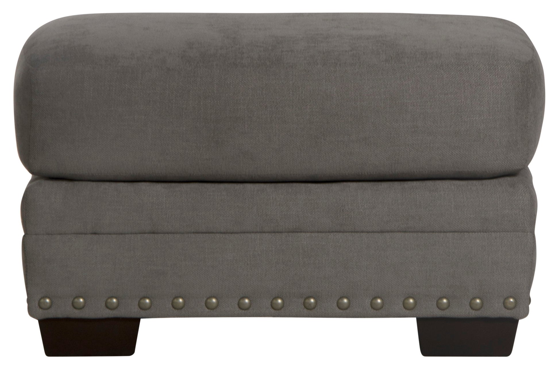 The contemporary farmhouse styling of the Cutler ottoman is a perfect companion piece to the Cutler chair. Elevate your comfort by putting your feet up to relax. Covered in a soft, durable 100% polyester body fabric in a light gray color the Cutler brings style to any room. The look is completed with pewter finished nailhead accents along the base.