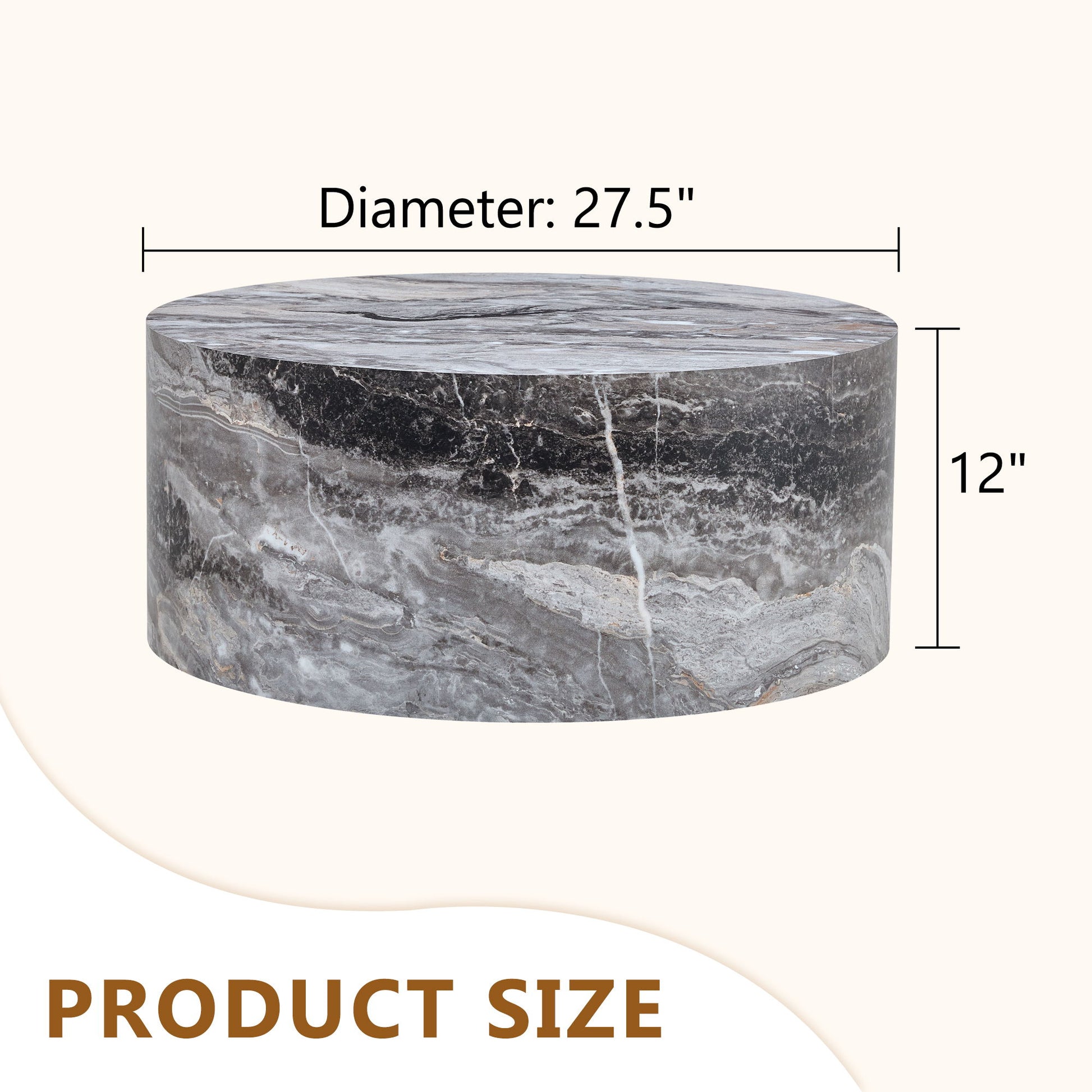 Simple Marble Textured Cylindrical Coffee Table, Industrial Style Living Room Furniture - Gray