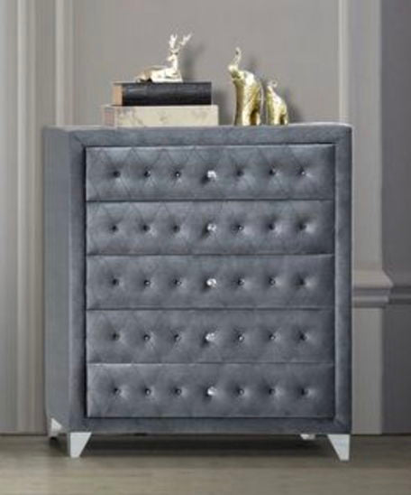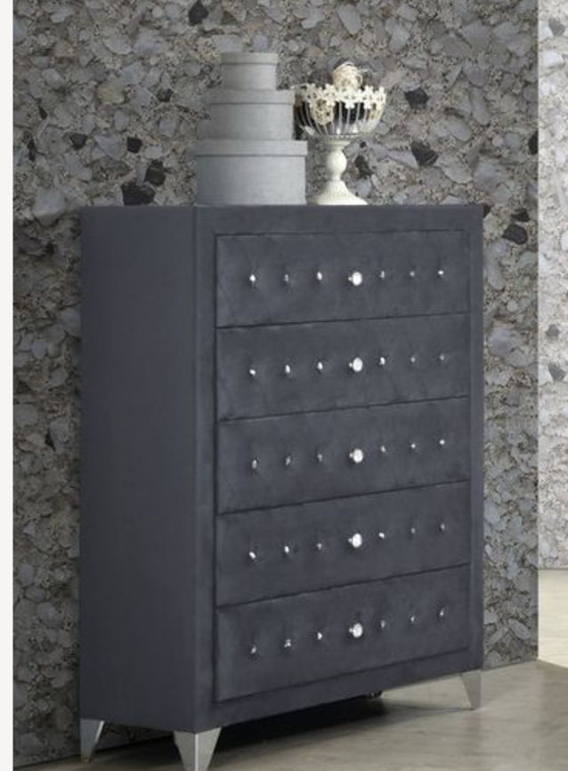 • Luxurious Design: This 5-drawer chest combines elegance and functionality with soft velvet-padded fronts, offering a rich, tactile element to enhance its striking design.