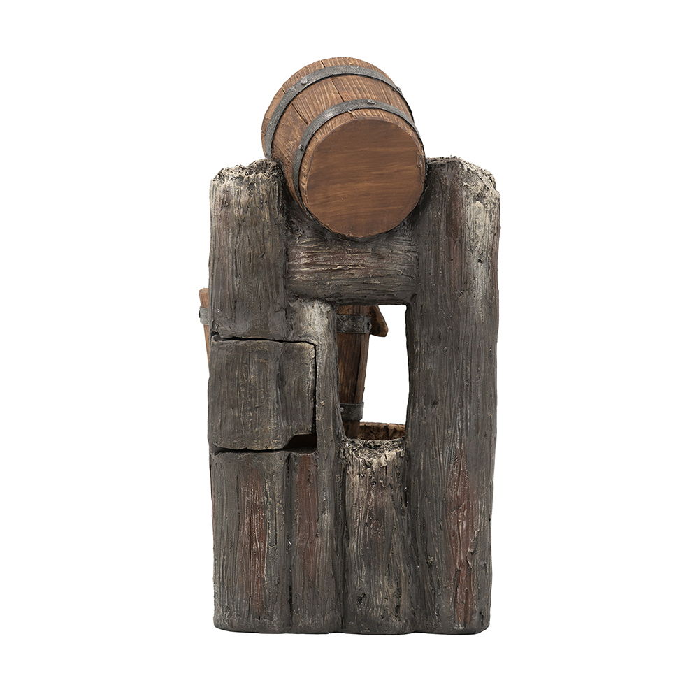 • Soothing Ambiance: This decorative water fountain introduces a calming atmosphere with its rustic three-tiered bucket design.