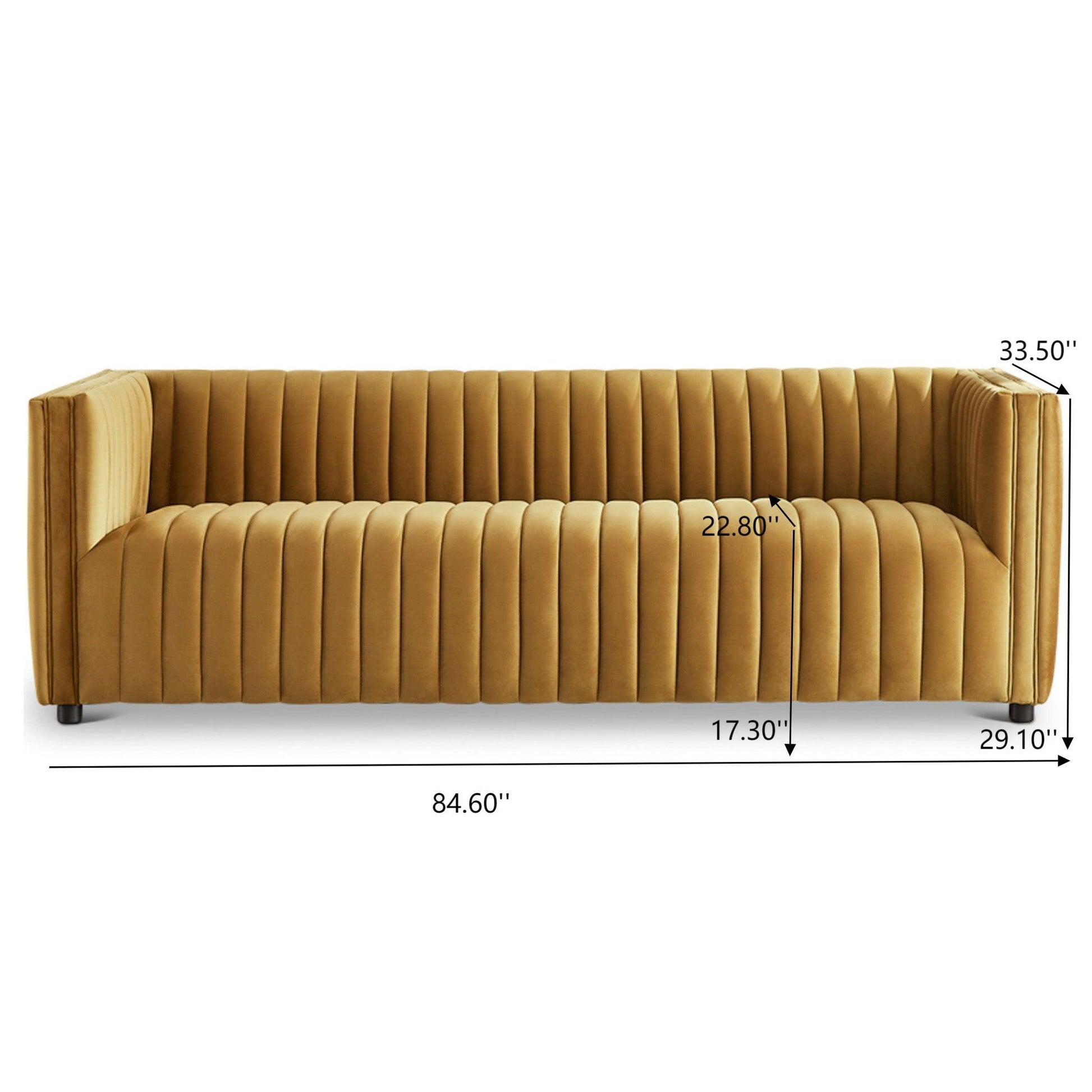 Dominic - Channel Tufted Velvet Sofa - Dark Yellow