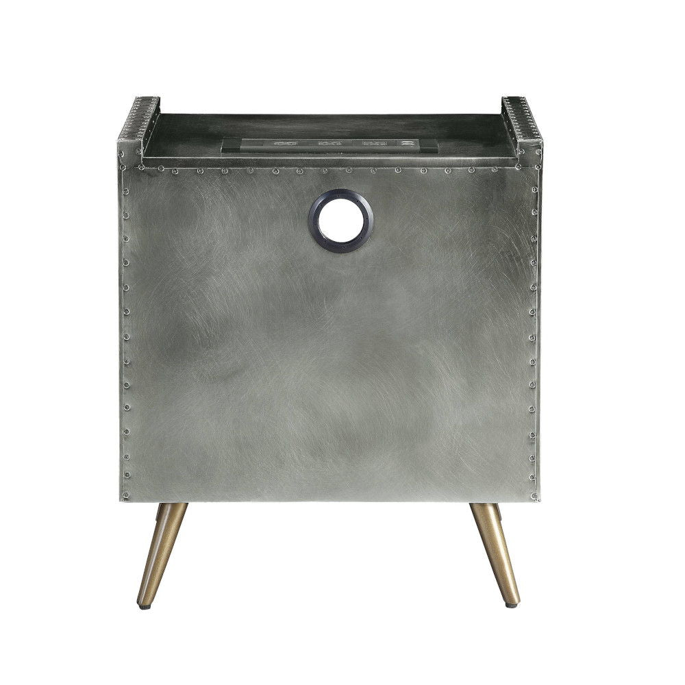Doris - Nightstand With USB & Electric Lock - Gray Top Grain Leather & Aluminum