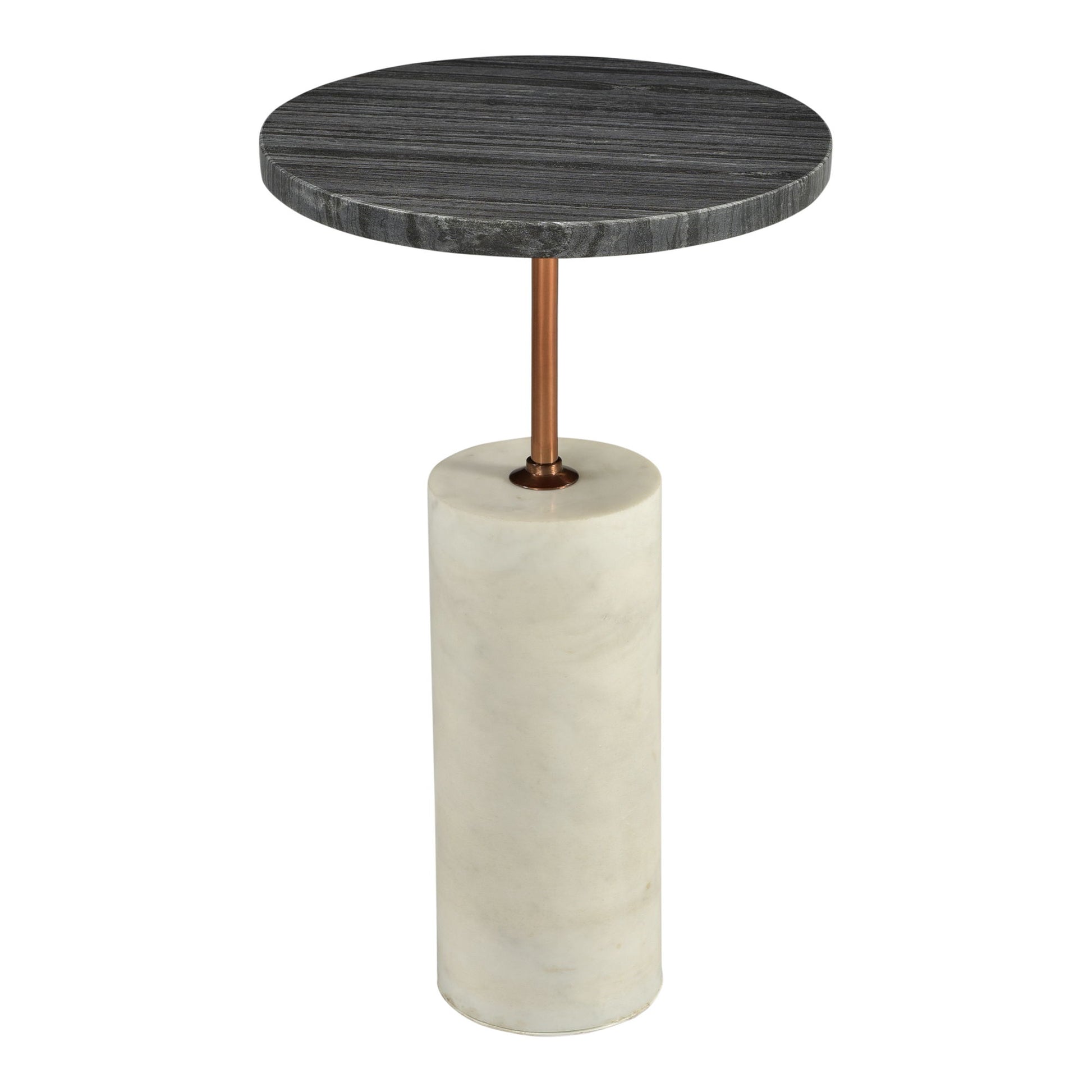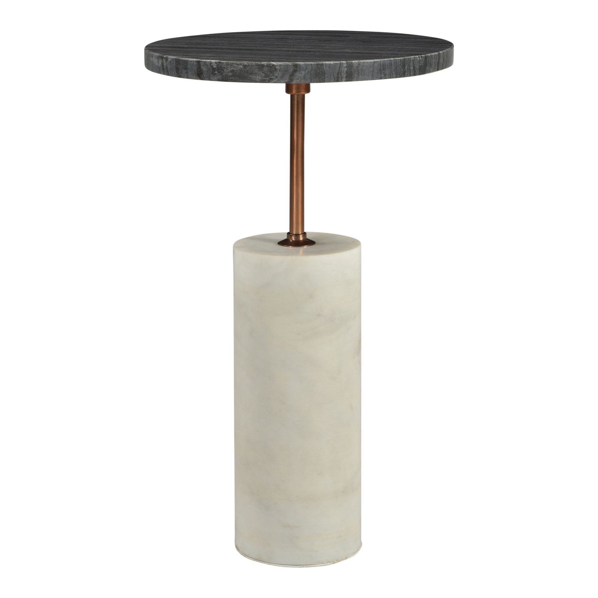 A mix of black and white marble, the Dusk accent table brings together contemporary modern design with minimalism and structure-play. This table is versatile and unique with a stunning white marble base, a brass-finished iron post, and moody grey marble top —the perfect wow factor for your living space.