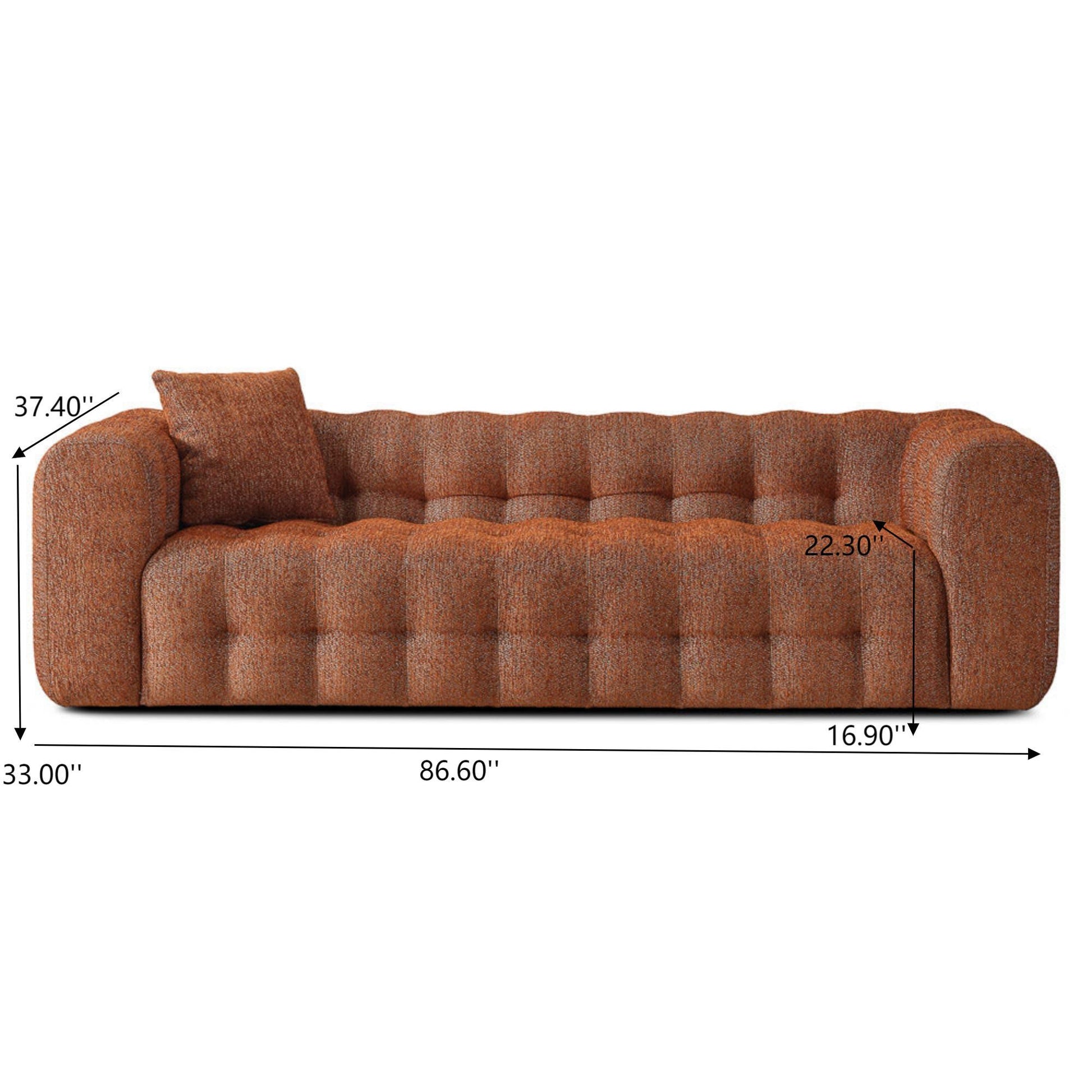 • Eye-Catching Design: The Eden Modern Tufted Chesterfield Boucle Fabric Sofa features a stylish tufted chesterfield design, creating an inviting focal point for your living room or entertainment space.