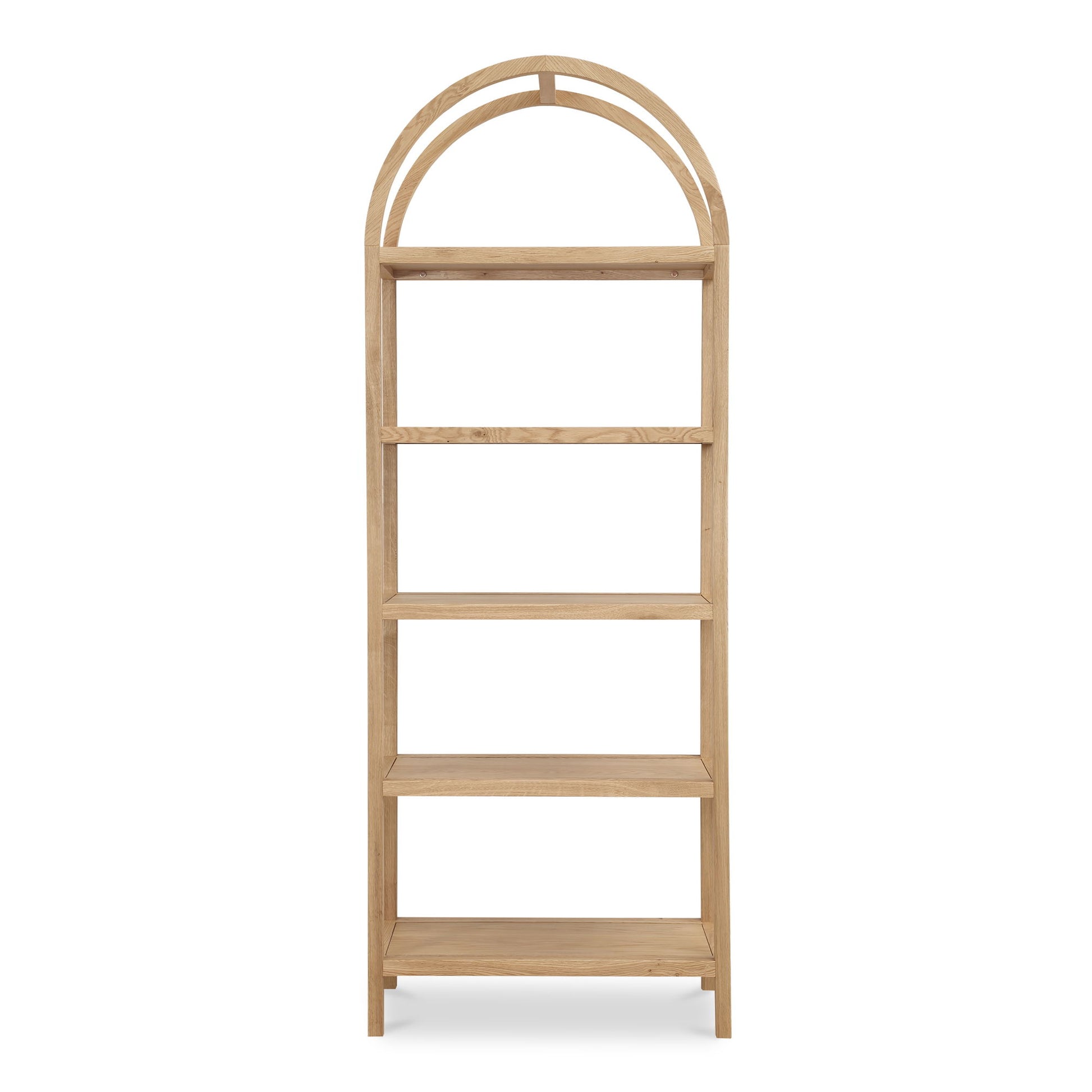 An artistic blend of style and sturdiness, the Eero bookcase features a solid oak frame with oak-veneered shelves ready to display cherished books, keepsakes, and collectibles. Its natural finish engenders organic sophistication, while the arch support is a testament to exquisite architectural design.