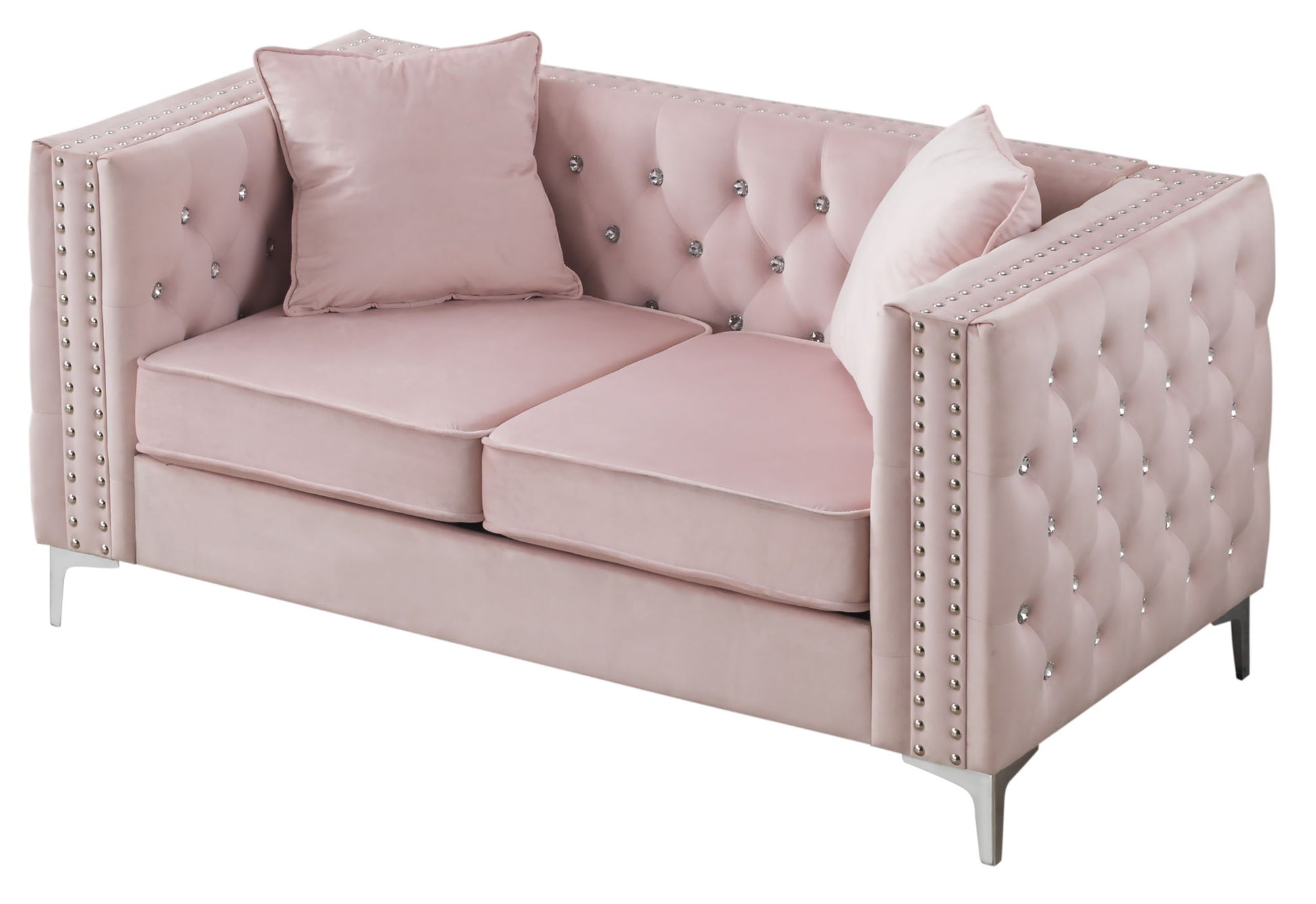 • Glamorous Look: Chromed steel legs give this loveseat an updated glam look, adding a touch of sophistication to any room.
