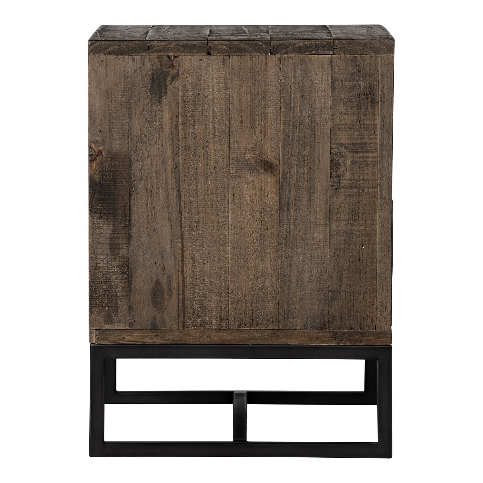 Give your bedroom a uniform industrial look with a rustic feel. Clean lines and industrial detailing make the Elena Nightstand the perfect addition to your bedroom. With a light stain on its solid pine wood, this nightstand blends in seamlessly with the rest of the Elena collection.