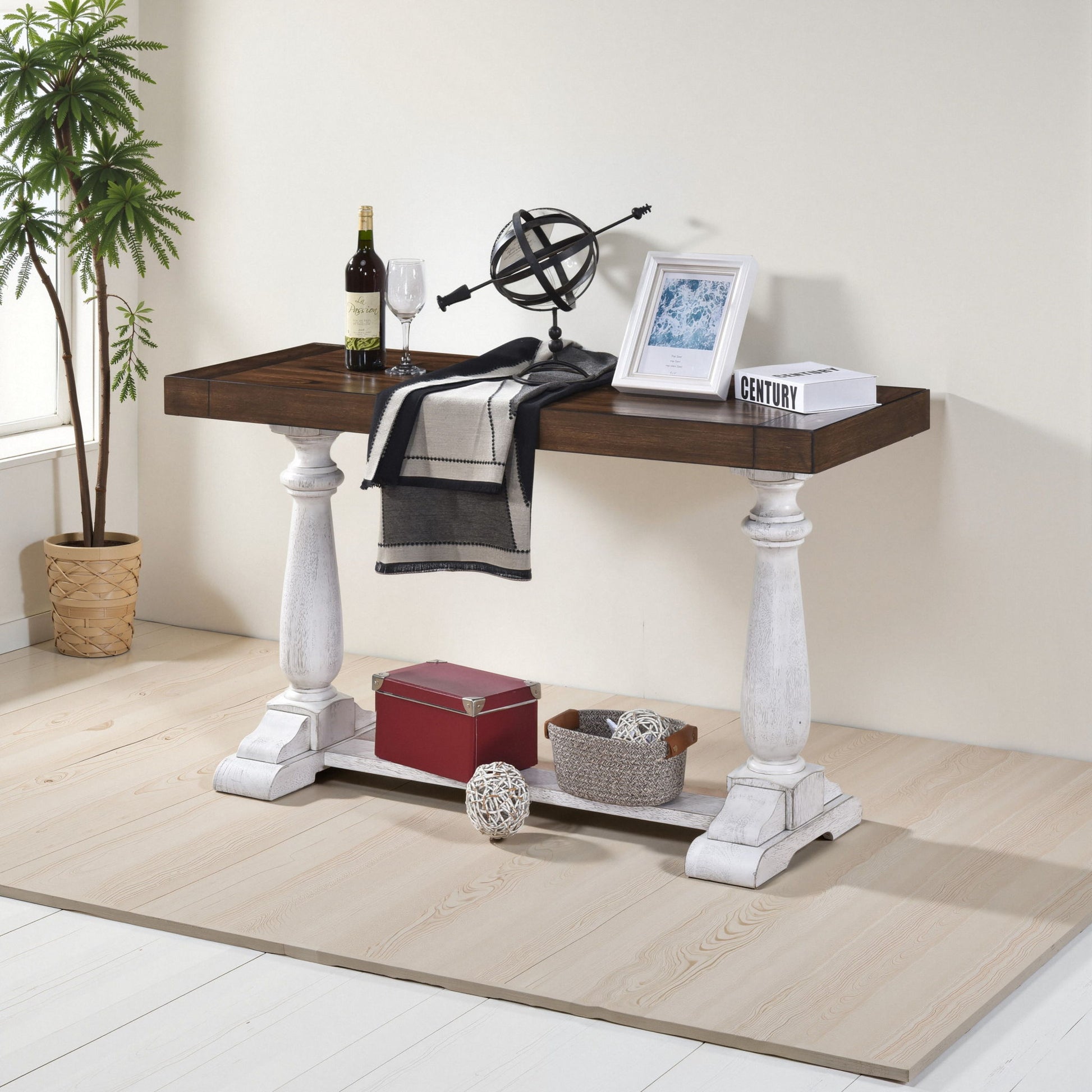 Sofa Tabe 30" Height Pedestal Table Leg Farmhouse Design Retro Design Living Room - Antique Dark Oak / Antique White