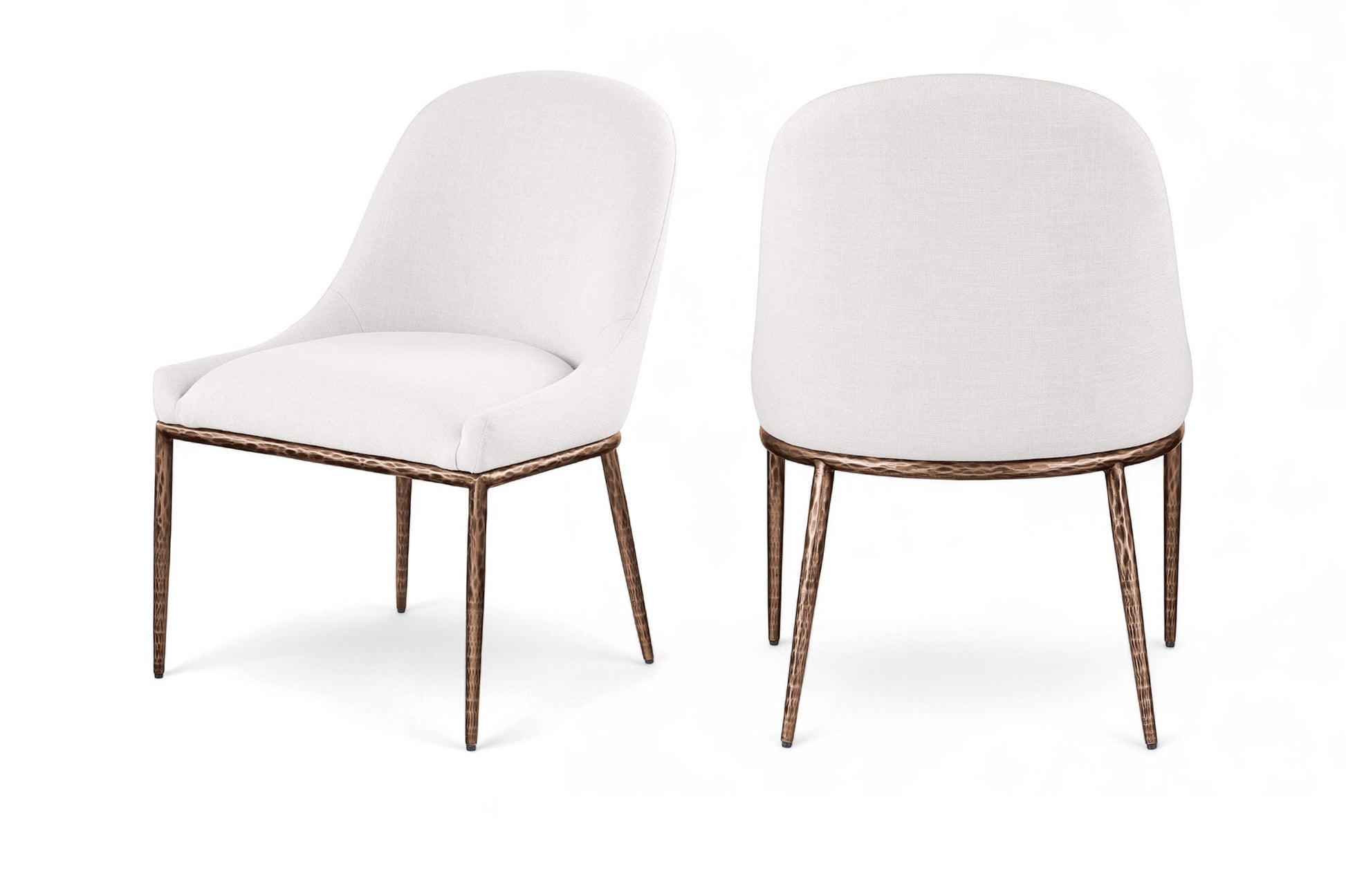 Ferro - Linen Textured Performance Fabric Upholstered Dining Side Chair - Cream / Brushed Bronze